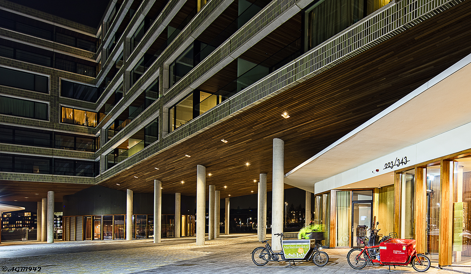 Avondfoto van het Pontsteiger gebouw.