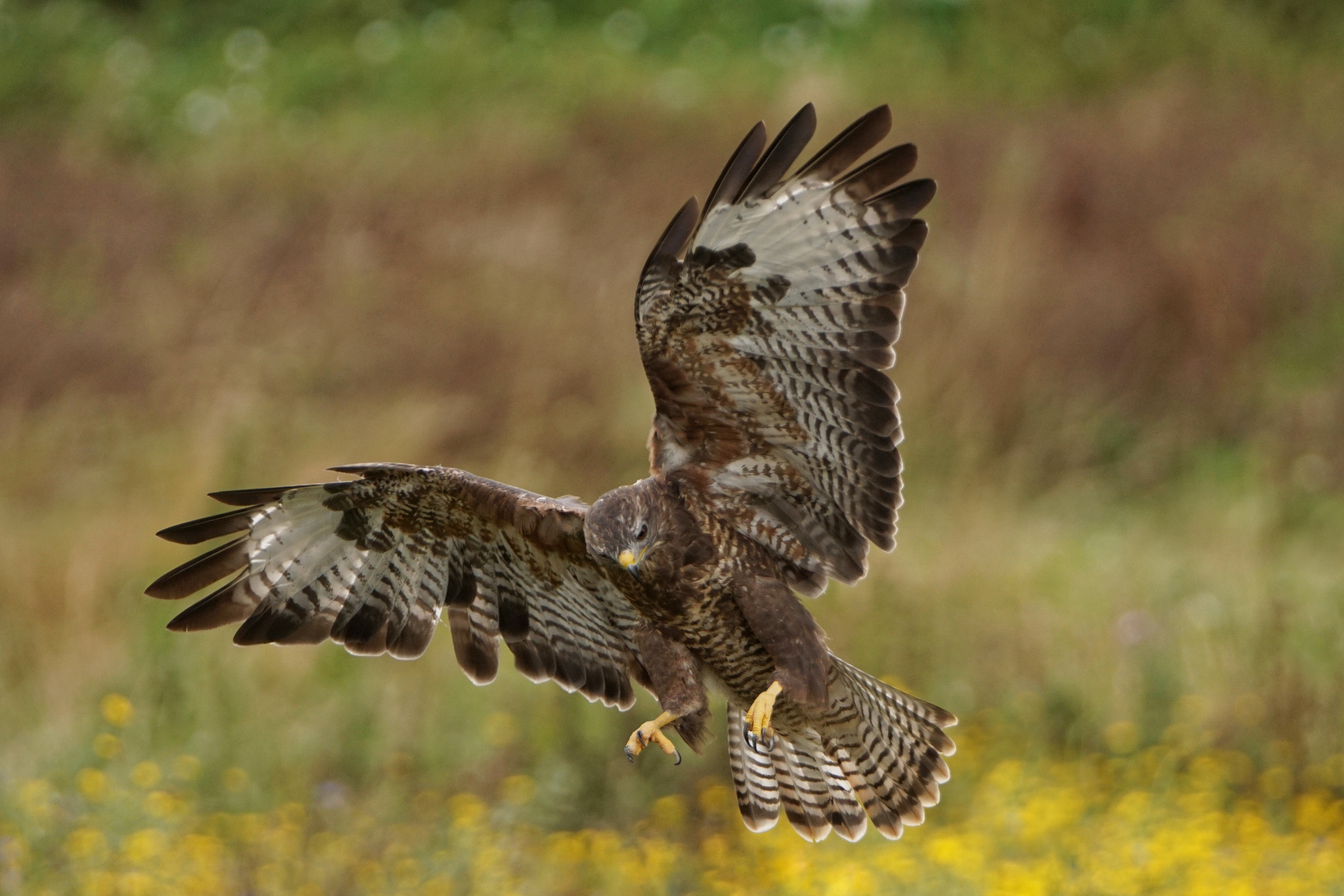 Hier is de buizerd gefocust op zijn prooi