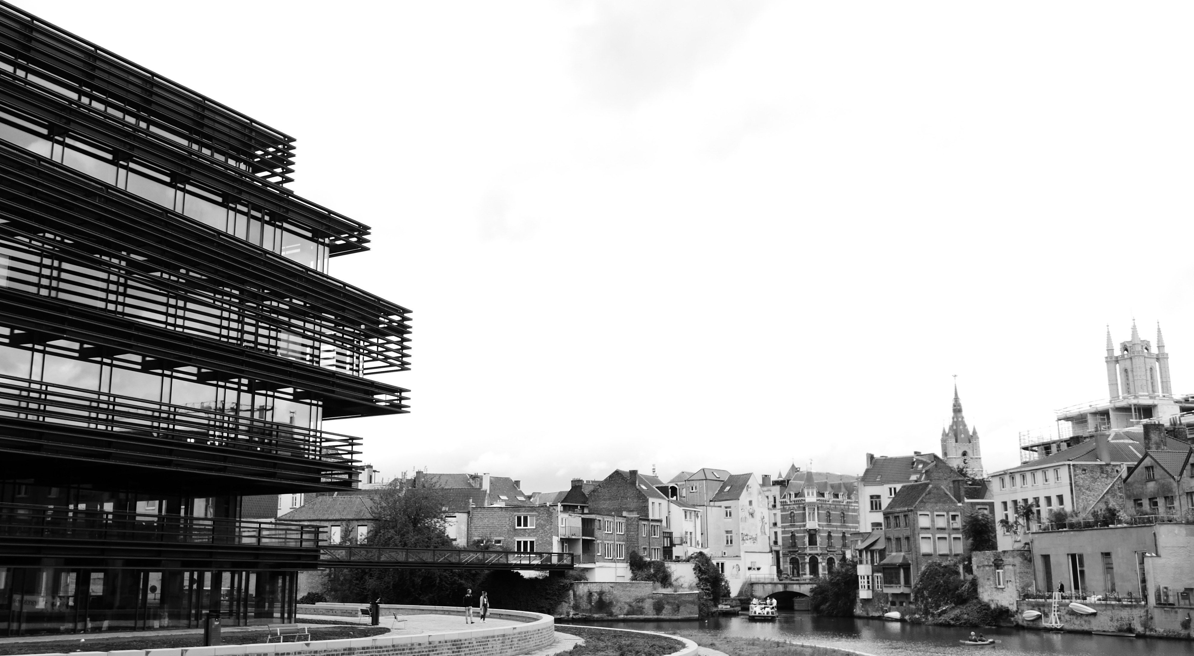 Zicht op de moderne en oude architectuur van Gent, België.