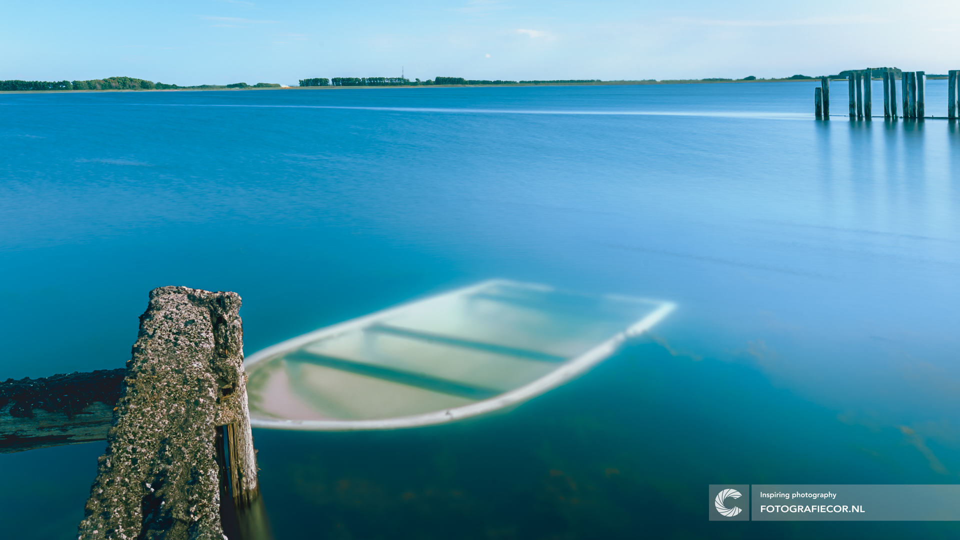 In een landschap van water en polders ligt dit eenzame bootje, surrealistisch op de bodem van het Veerse meer als een vergeten monument van verleden tijden. Door gebruik te make van een lange sluitertijd door gebruik te maken van speciale filters lijkt de tijd nog meer stil te staan en kan je op de bodem kijken van dit helder water dat afkomstig uit de Oosterschelde.