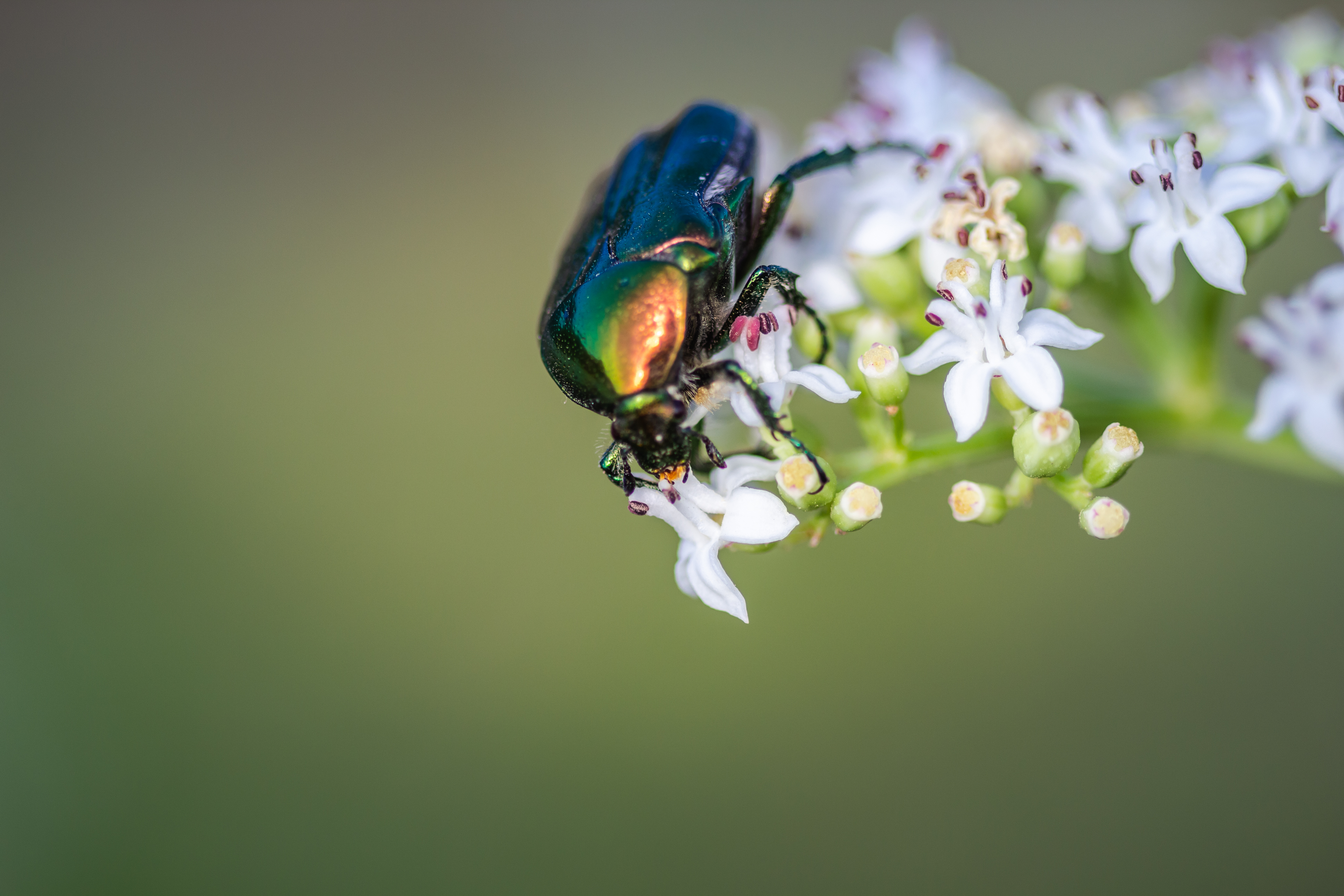 Het is mooi om te zien hoe de zon het schild van de kever verlicht.