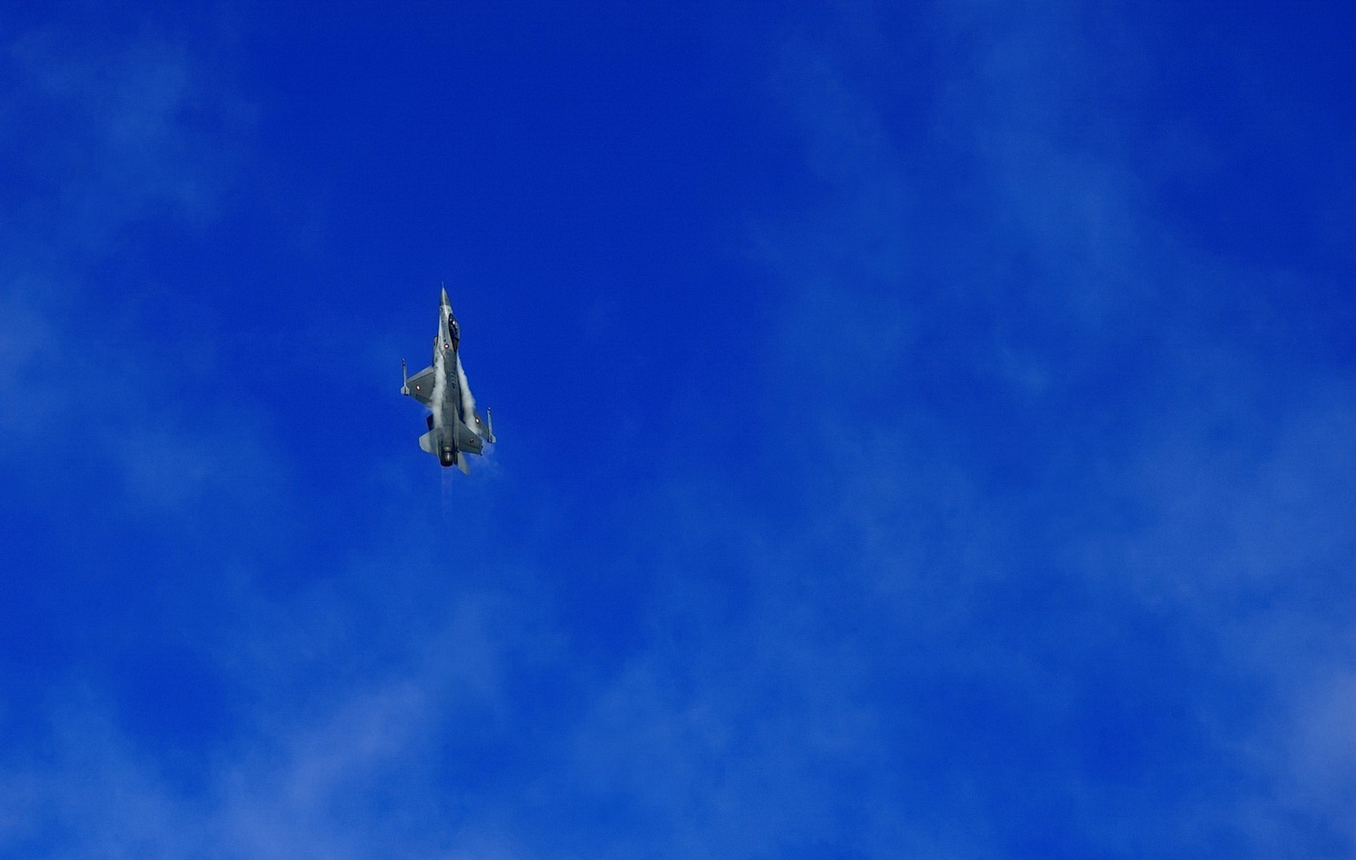 Deense F16 vliegt stijl omhoog bij een demonstratie tijdens de luchtmachtdagen in Volkel 2019