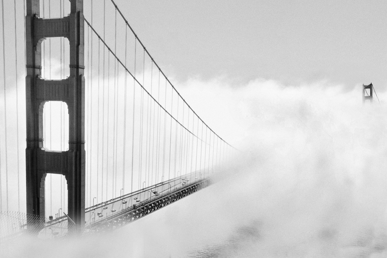 De Golden Gate Brigde (San Francisco, USA) in de mist.