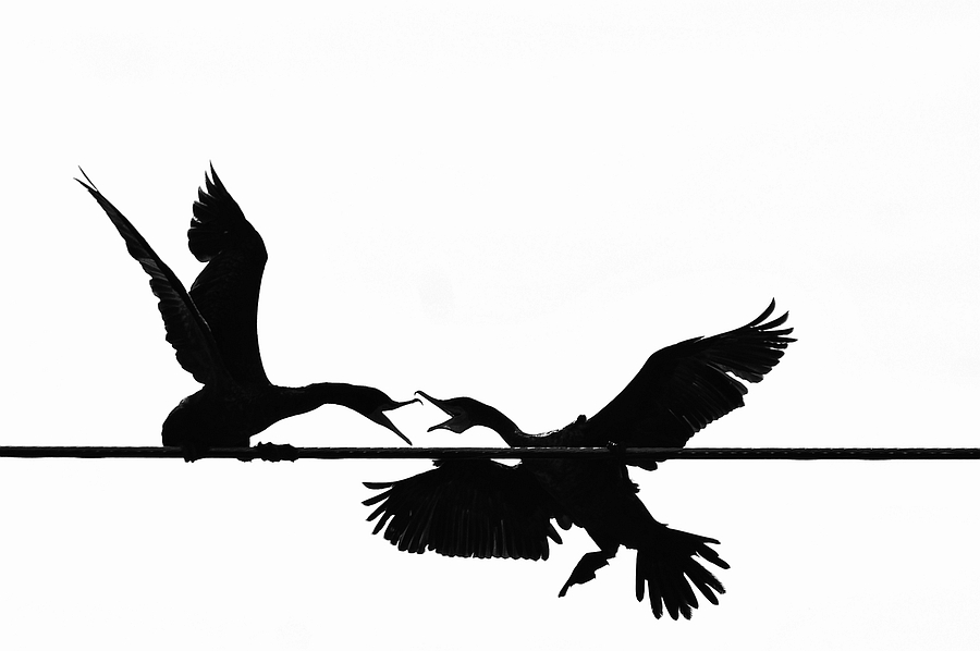vechtende aalscholvers