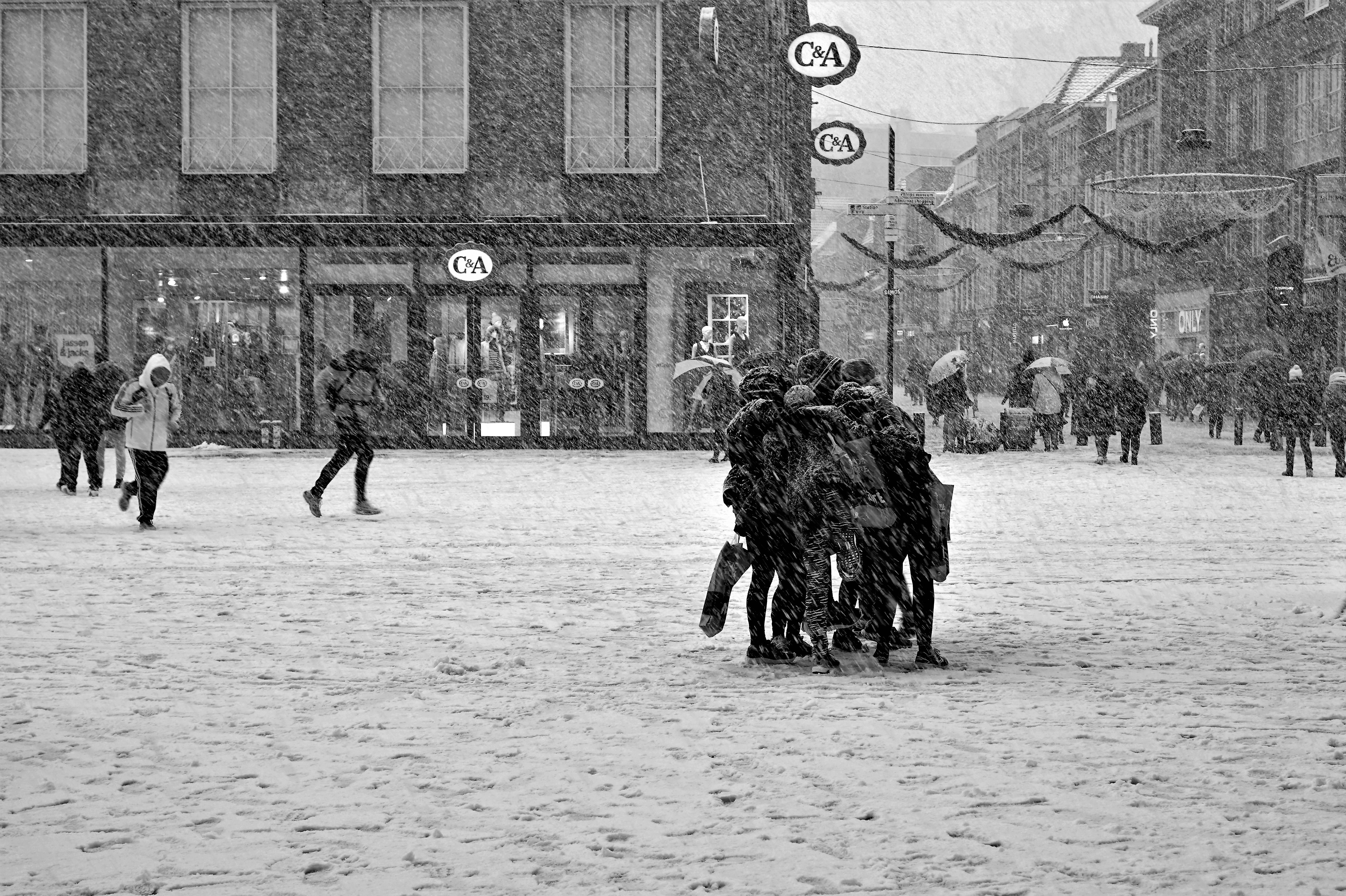 Groepsknuffel in de sneeuw