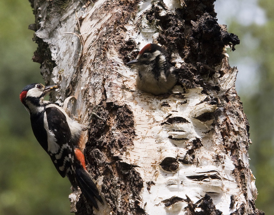 grote-bonte-specht-voert-jong
