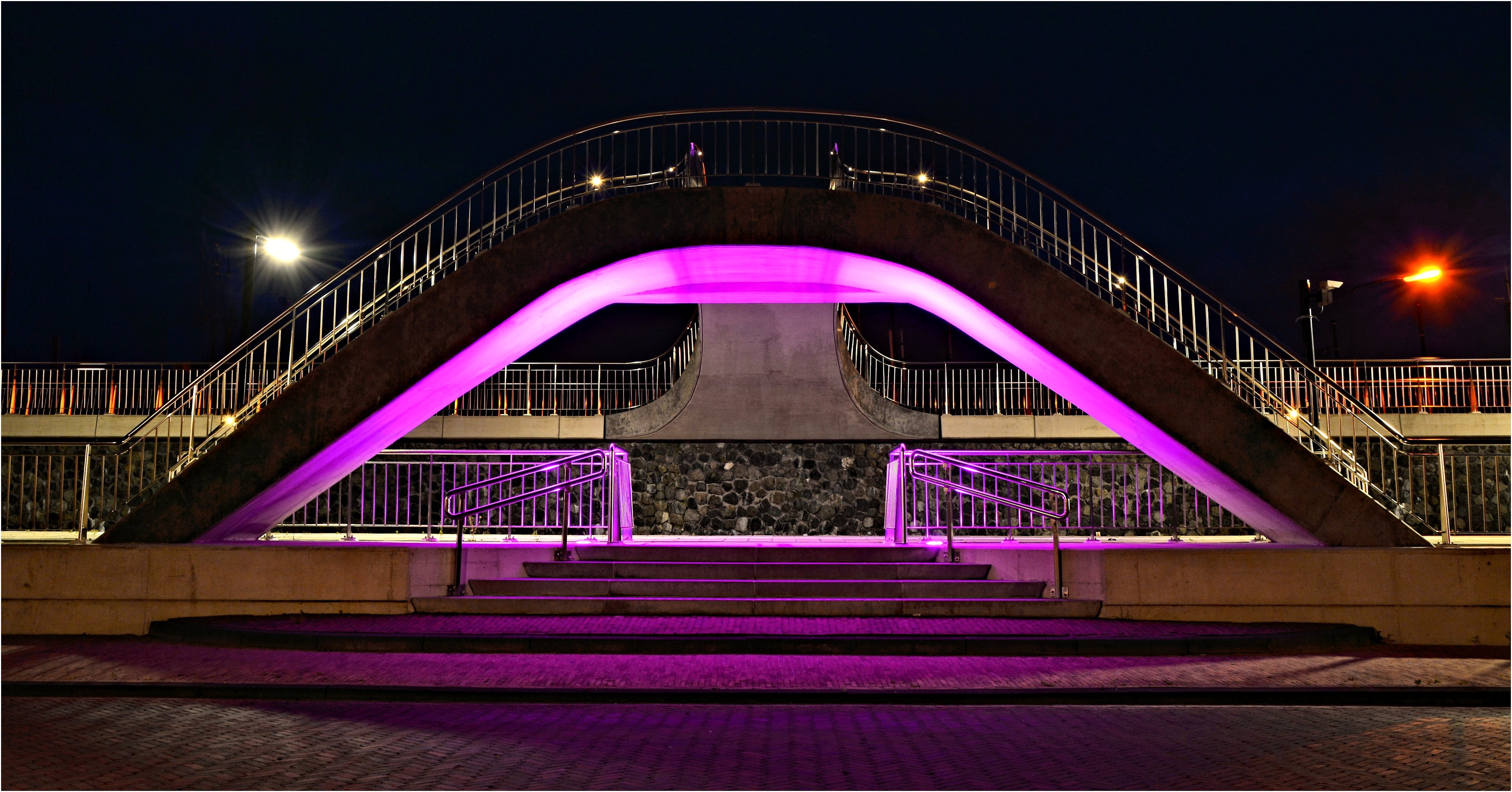 Grote voetgangersbrug over de keermuur