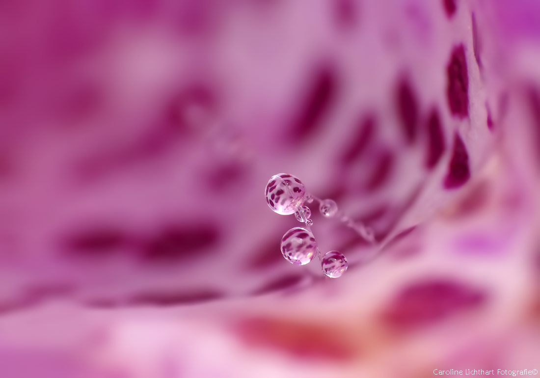 Druppeltjes hangend aan de haartjes in de bloem-kelk van Vingerhoedskruid.