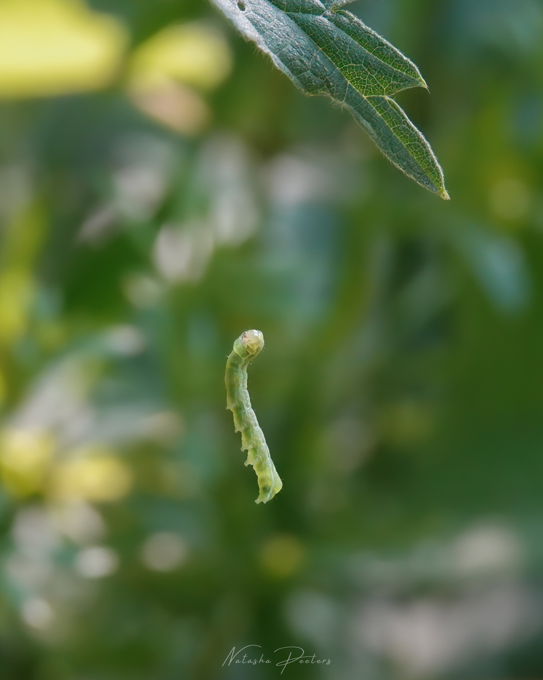 Rups hangend aan een onzichtbaar draadje