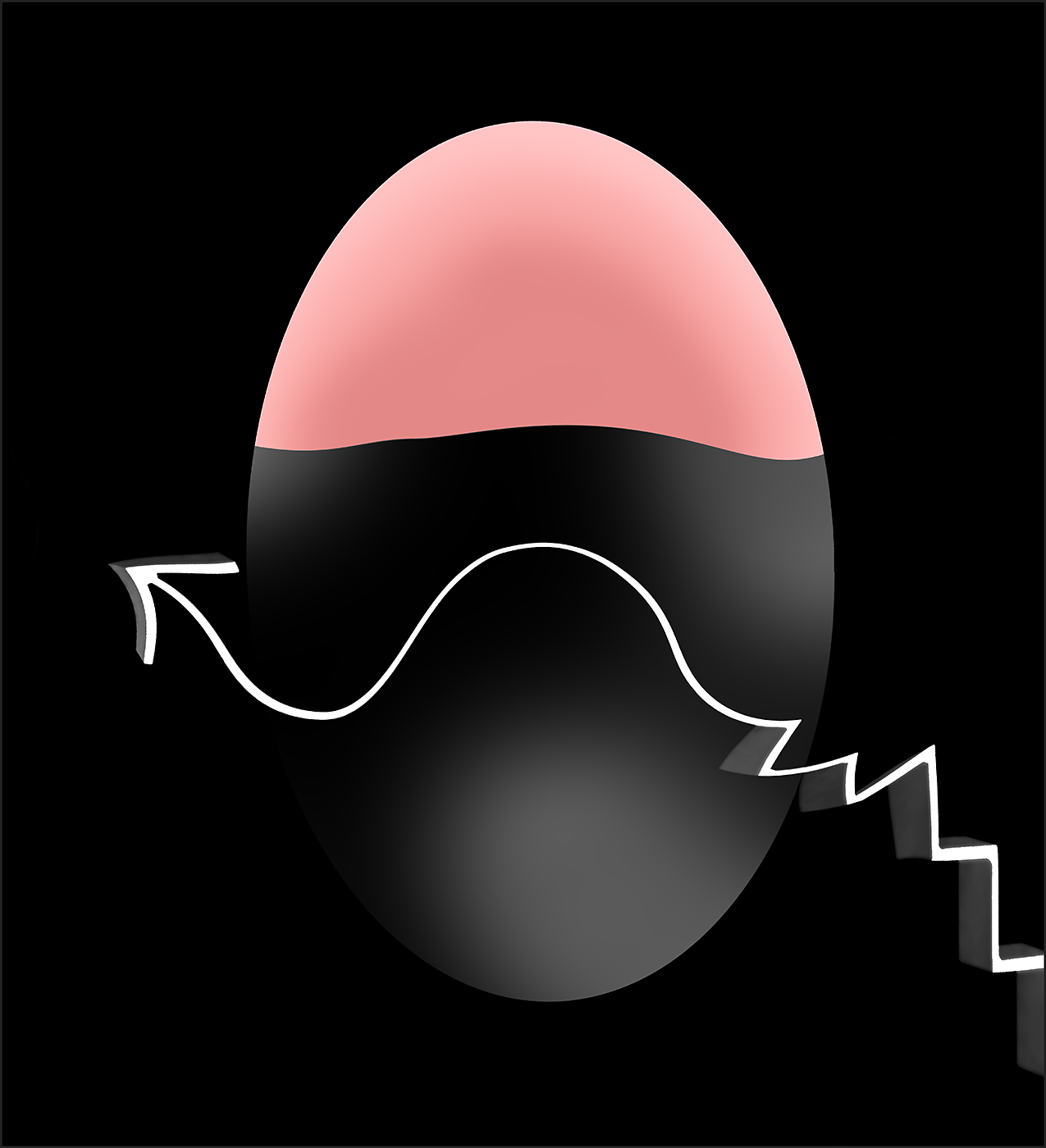 Een bewerkte samenvoeging van twee foto's... Een witte binnenzijde van een zwarte lampenkap en een vervormde ijzeren, gesmede witte pijl van een tentoonstellingsruimte... Beide voorwerpen hingen op 15 m van elkaar...