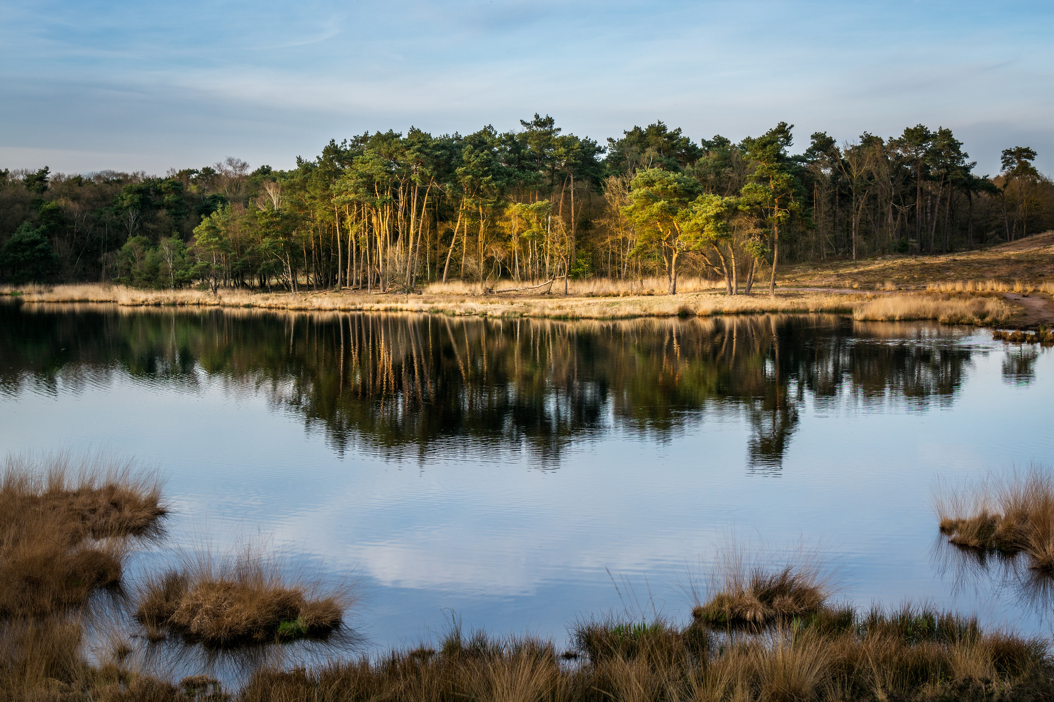 Laatste zonlicht schijnt op de Hatertse vennen.