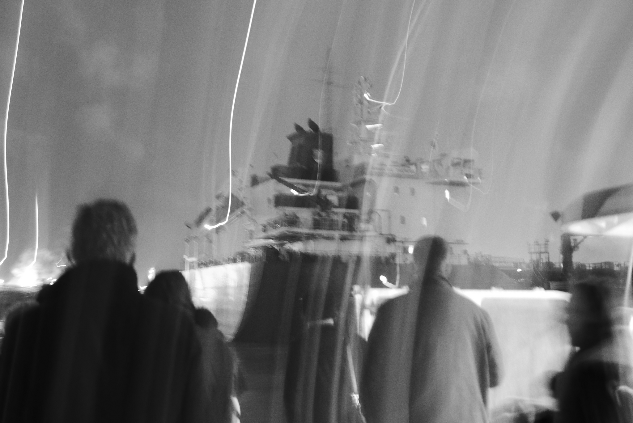 Zicht op een containerschip, genomen vanaf de waterbus, Antwerpen, Deurganckdok.