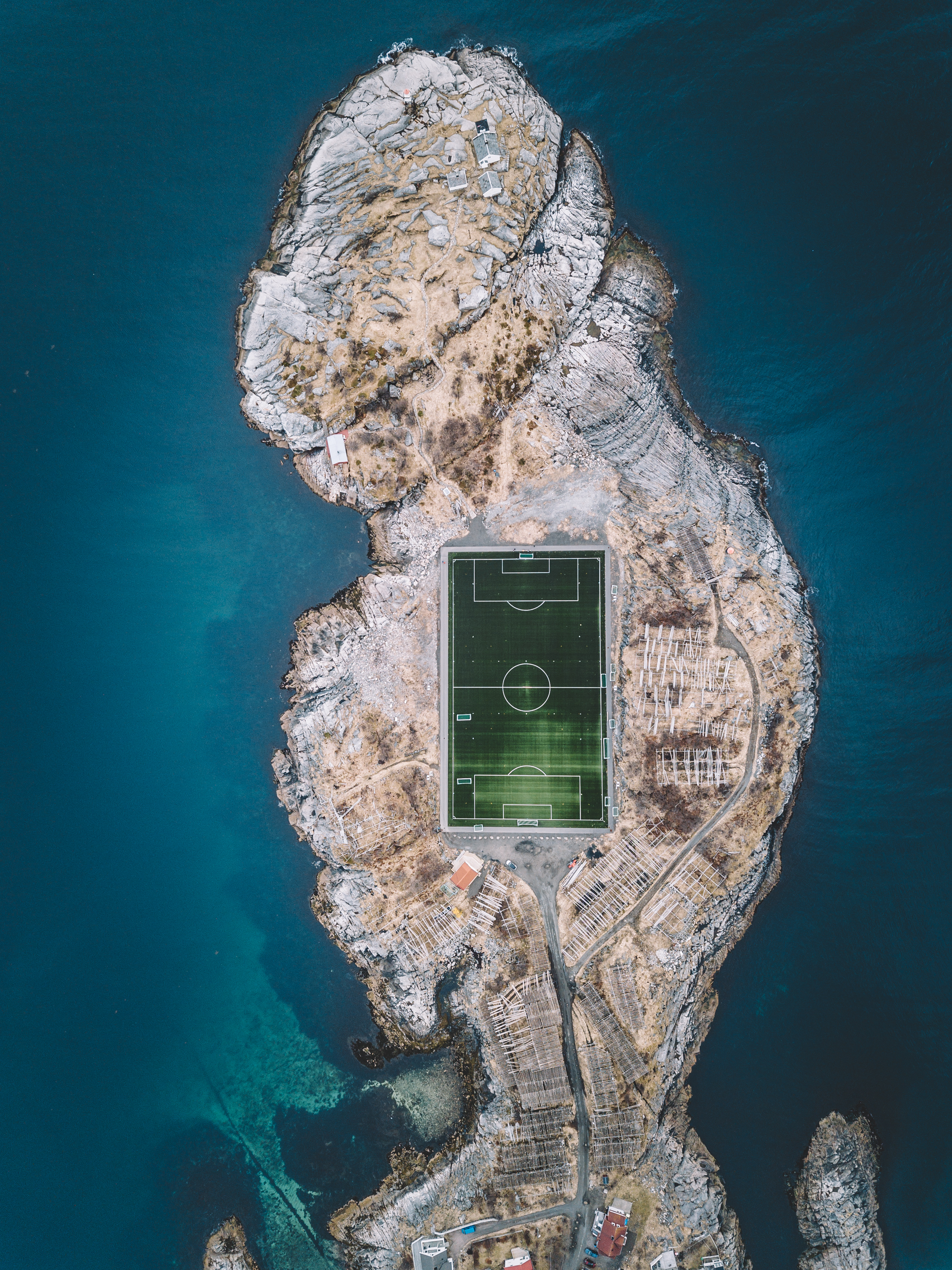 Misschien toch wel een van de mooiste voetbalvelden ter wereld. Zeker gezien vanuit de lucht. Dit prachtige veld is gelegen op een eilandje van de lofoten in het kleine vissersdorpje Henningsvær. Machtig om te zien.