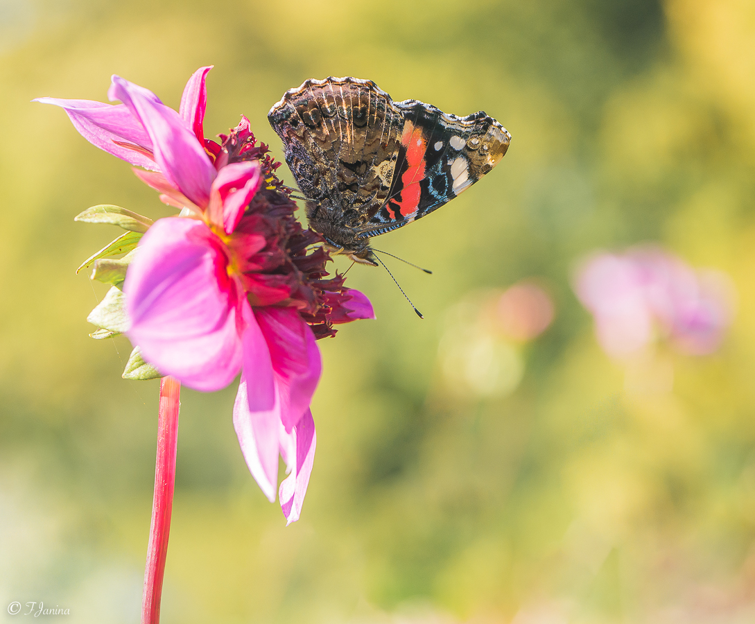 Atalanta op een uitgebloeide Dahlia