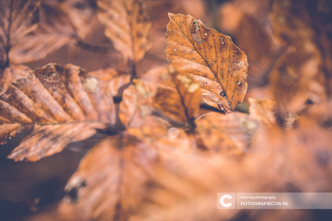 Na de bonte kleuren van de herfst kan het verval ook zijn mooie kanten hebben. Door te spelen met het diafragma kan je een heerlijk sfeertje creëren van een simple beukentak vol bladerren