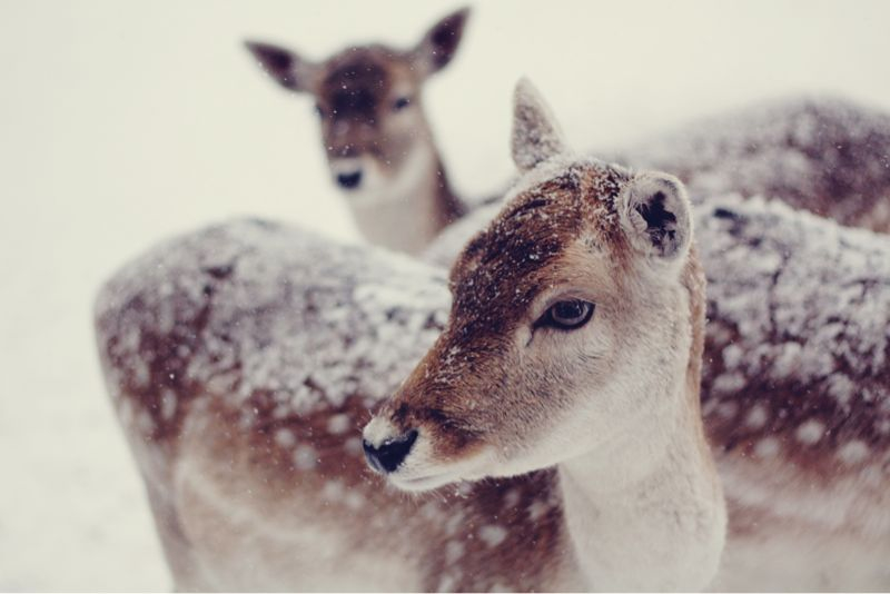 Herten in de sneeuw