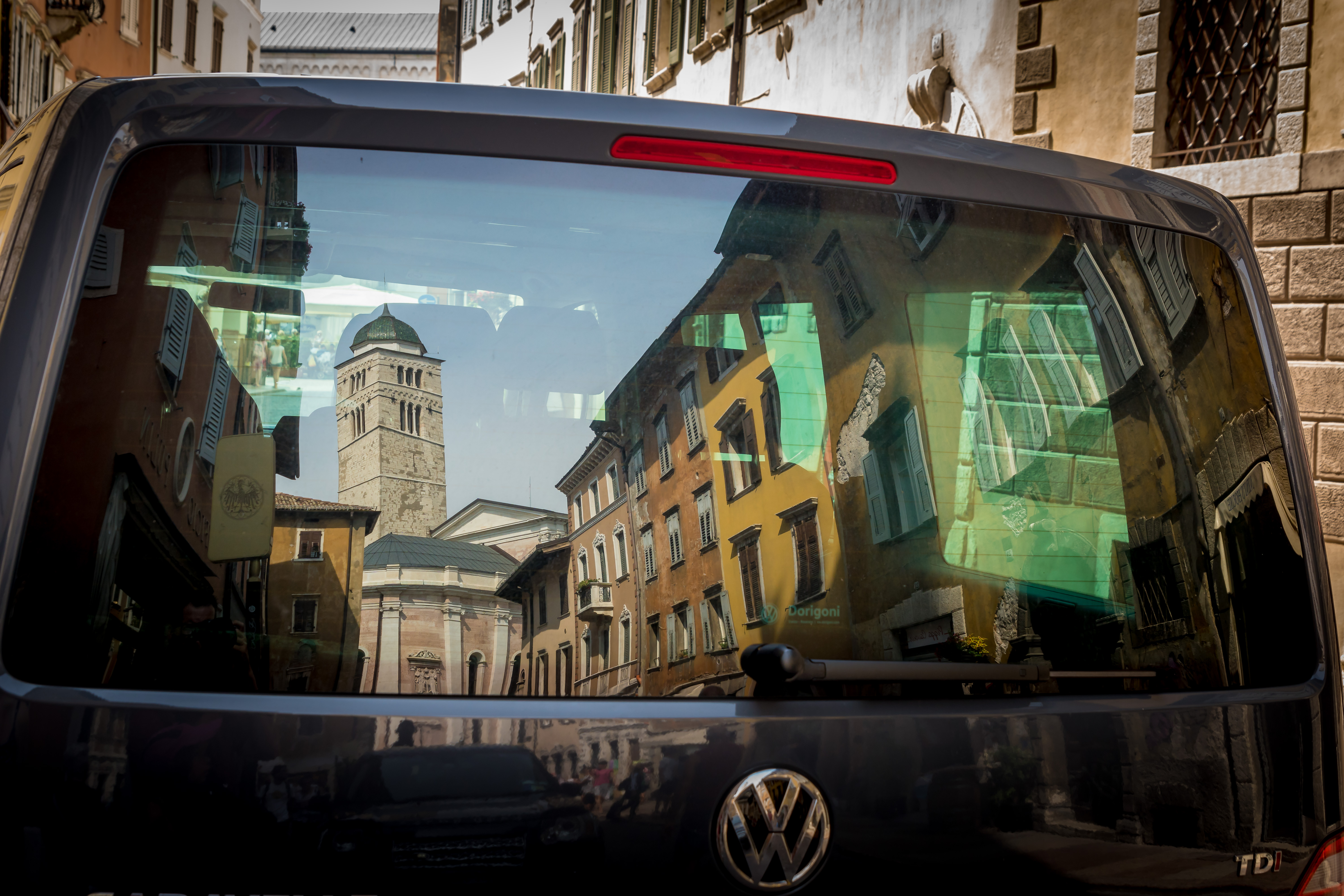 Op reis trekken we steeds verder en laten we vele mooie zaken achter ons. De reflectie in de achterruit laat de herinnering zien de we mee terug nemen van onze reizen.