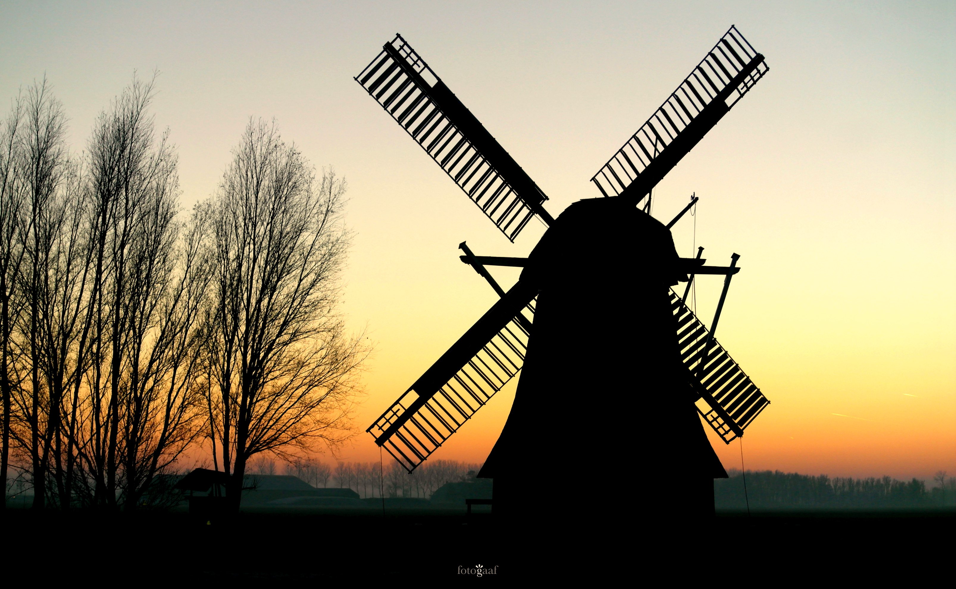 Een silhouette van poldermolen "De Westerhorner" in het Groningse Grijpskerk.