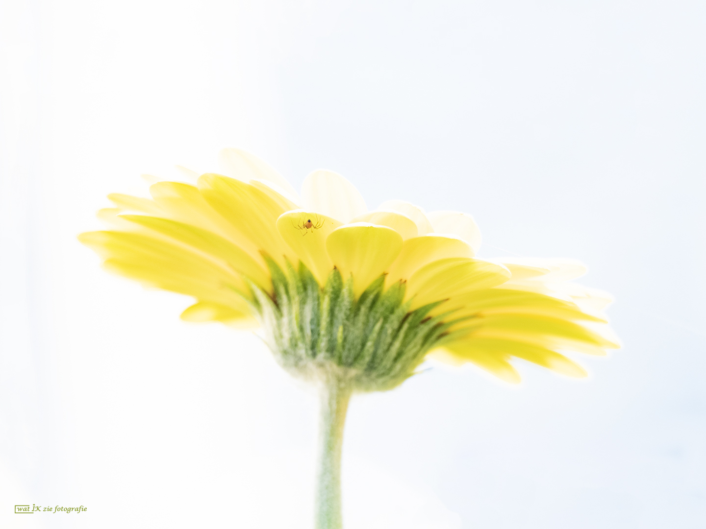 Een gerbera, gefotografeerd in high key, met als kers op de taart, een piepklein beestje aan de onderkant!!