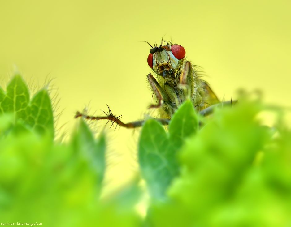 Een bepaalde vliegsoort kijkt wat nieuwsgierig naar de fotograaf.