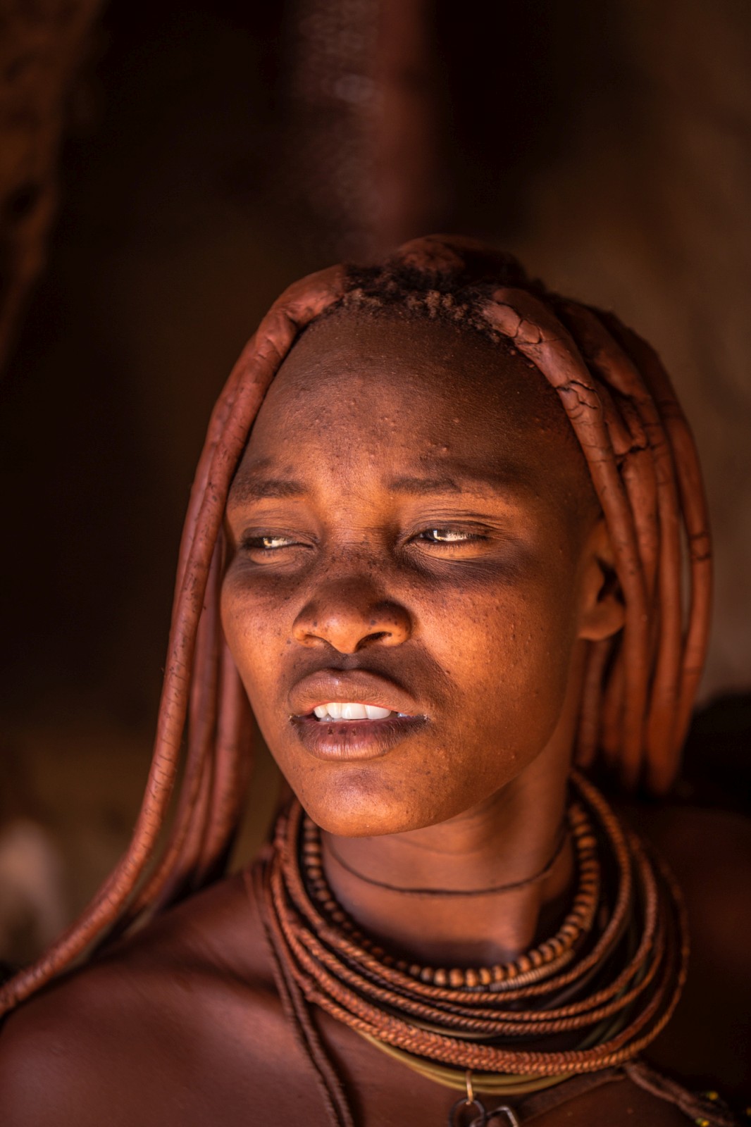In haar hut, in de buurt van Kamanjab, Namibië.