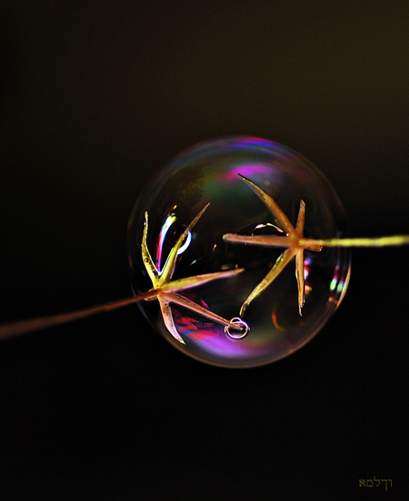 2 "hands" hold a small soap bubble......