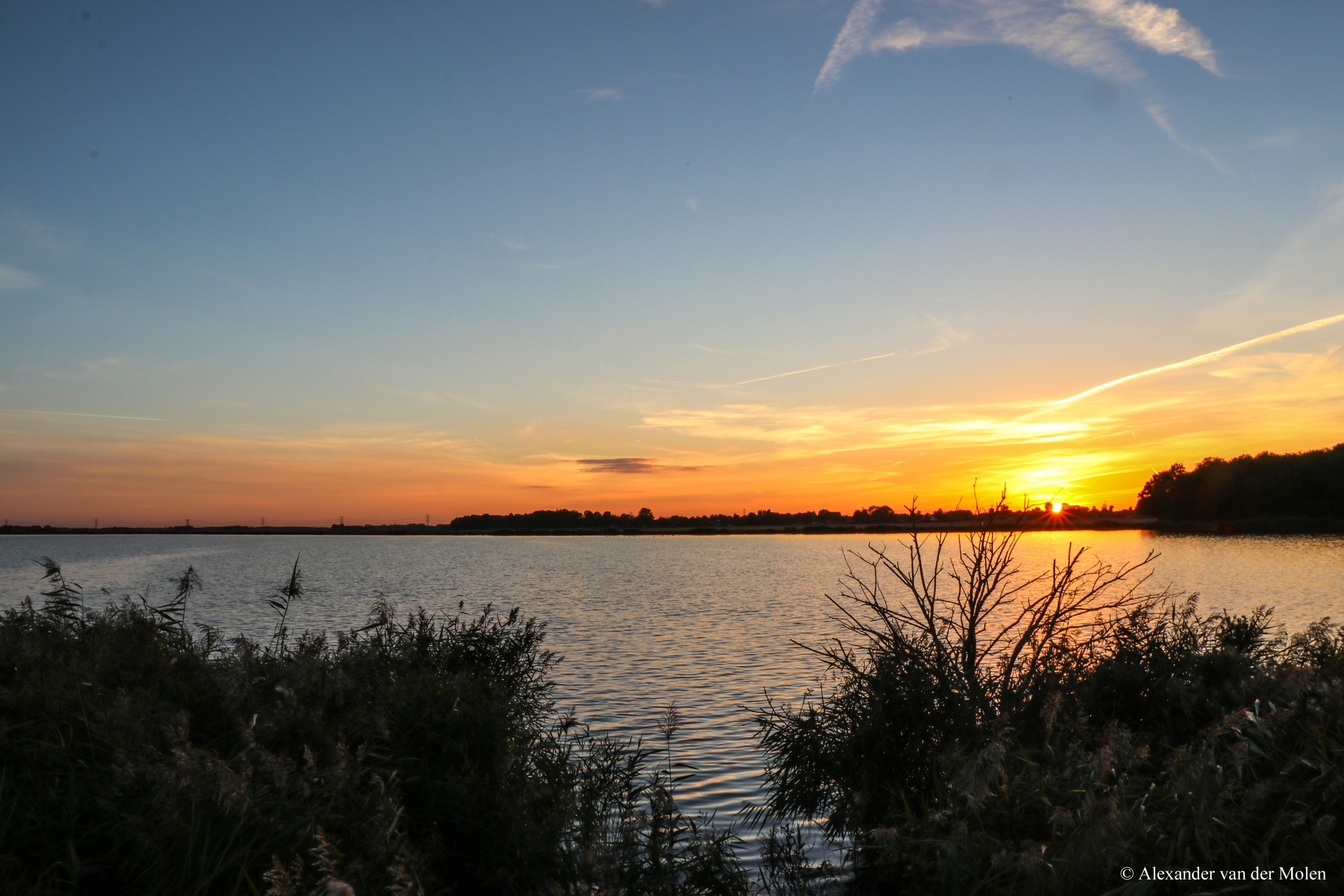 Zonsondergang bij het Hondshalstermeer in de prov. Groningen.