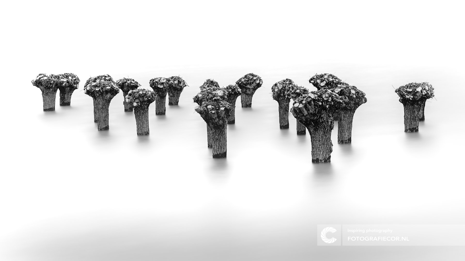 De uiterwaarden van de IJssel stonden weer eens onder water. Mooi moment om eens te experimenteren met lage sluitertijden, minimalisme en zwart-wit fotografie.