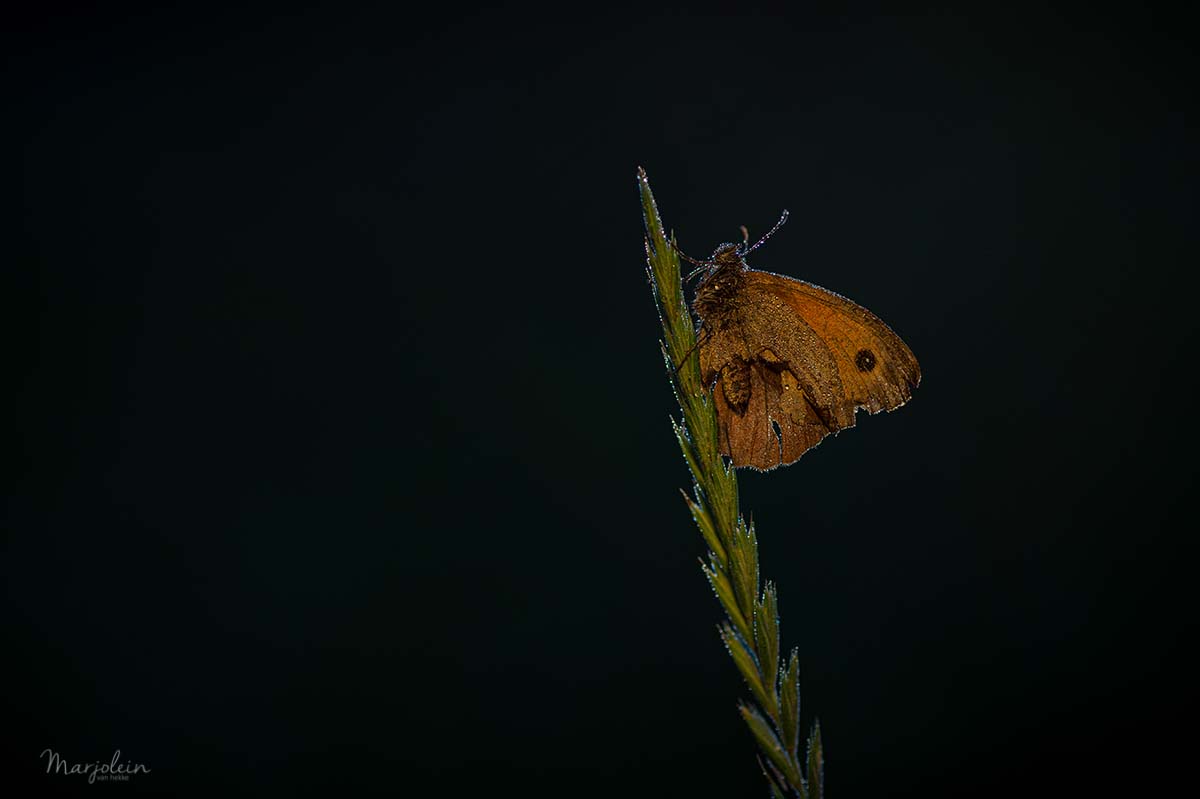 Ik hou van lichte foto's. Af en toe dwing ik mezelf om te experimenteren.Bij deze foto heb ik bewust onderbelicht en de vlinder met een reflectiescherm belicht met het daglicht.