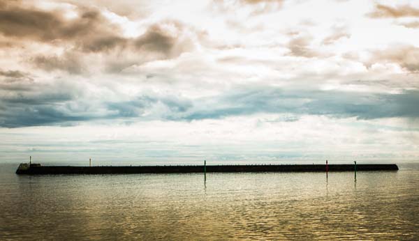 Onderweg van New Castel richting Schotland de kust volgend en aangetrokken door het vervreemde licht komend van de Noordzee. Door deze vrijliggend pier in het water voor symmetrie gekozen.