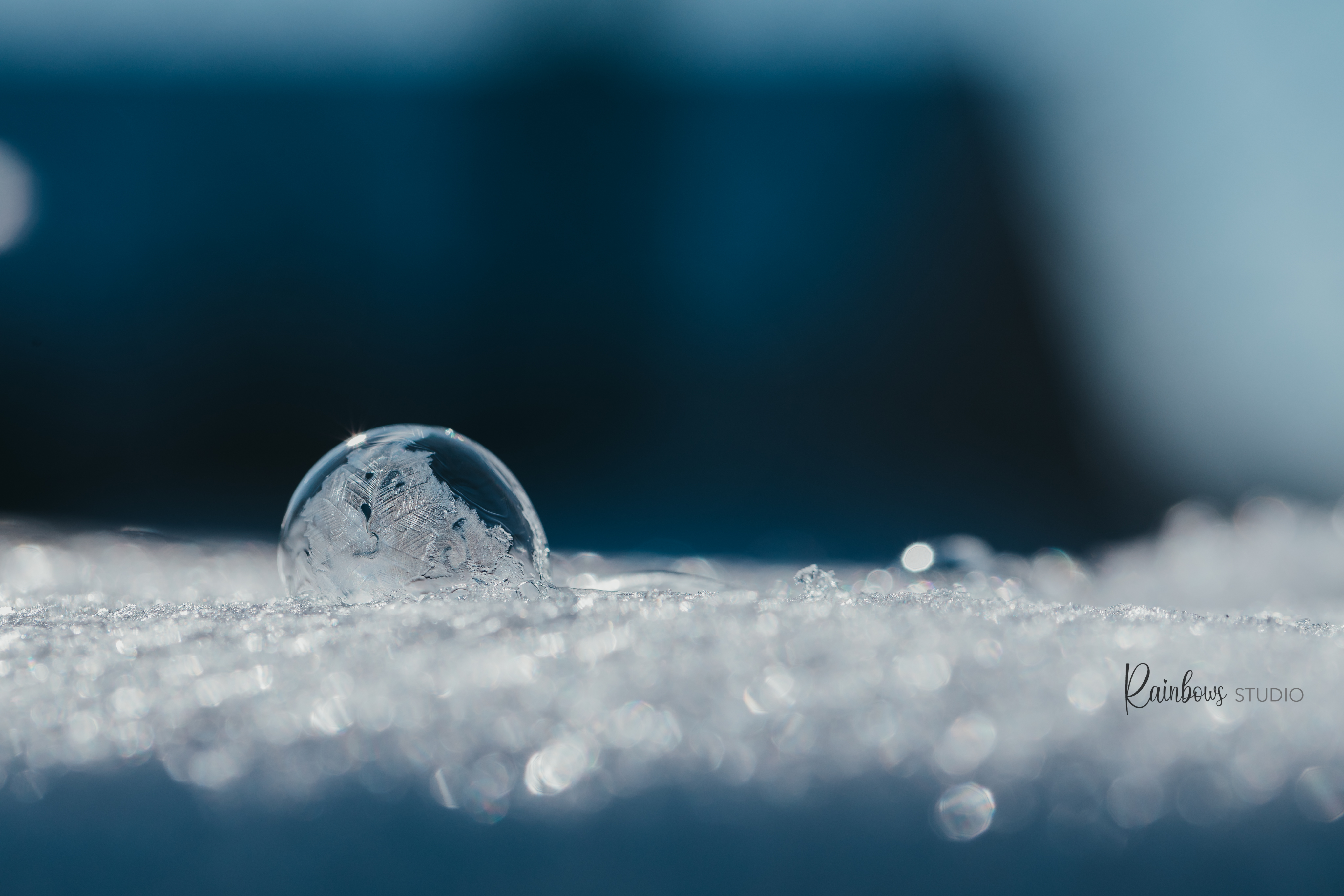 Het laagje ijs, zo koud, zorgt er voor dat de bel van onderuit begint te bevriezen. Van allerlei soorten ijskristallen zie je ontstaan!