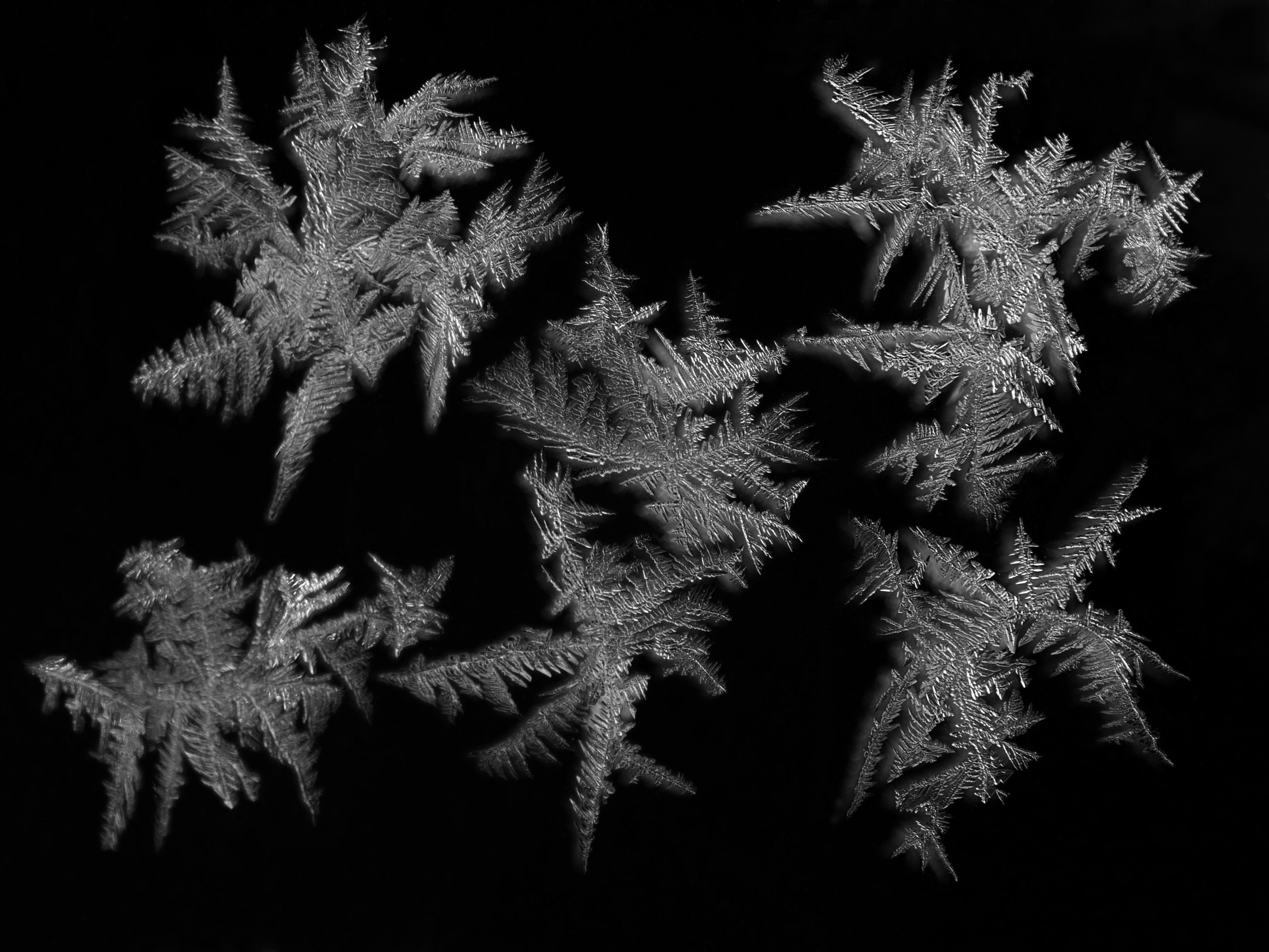 Nikon D80 i.c.m Tamron 90mm , ijskristallen op een spiegeltje tegen de schuurdeur , recht van voren gefotografeerd met groot diafragma voor zo min mogelijk reflekties , foto omgezet naar grijswaarden nivo's aangepast en wat ongerechtigheden verwijderd . Daarna nef opgeslagen als jopeg allemaal in faststone image viewer