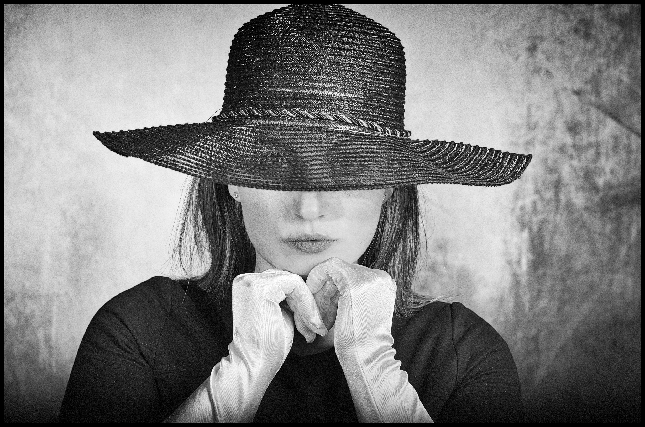 Portret in studio, omgezet in zwart wit