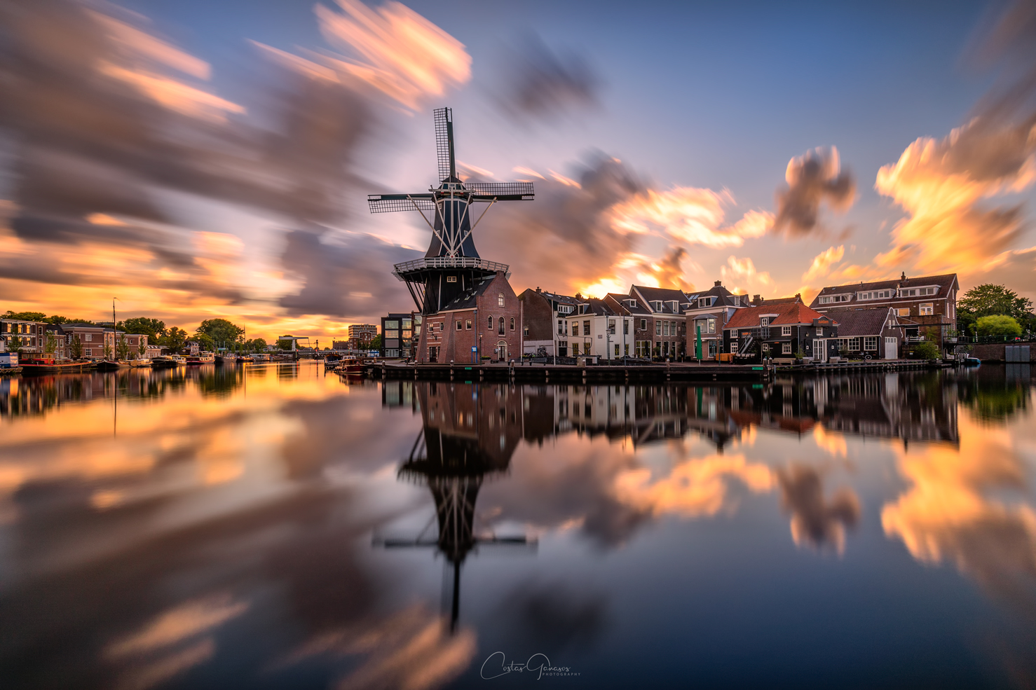 A mooi zonsopkomst in Haarlem bij molen de Adriaan.