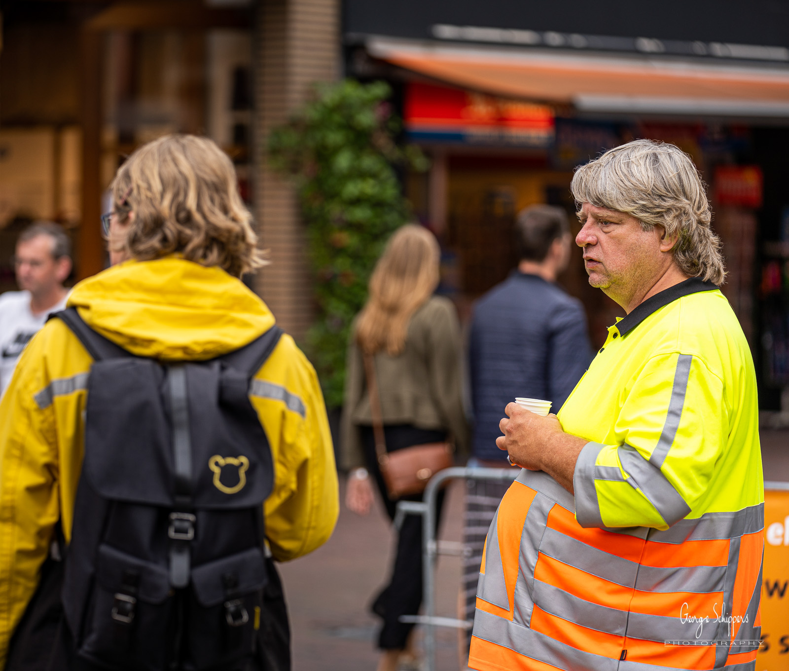 25 juli 2020 - Centrum van Amersfoort. Bij de entrees van het winkelgebied zijn hekken geplaatst waar verkeersregelaars in hesjes het publiek wijzen op het houden van 1,5 meter afstand.