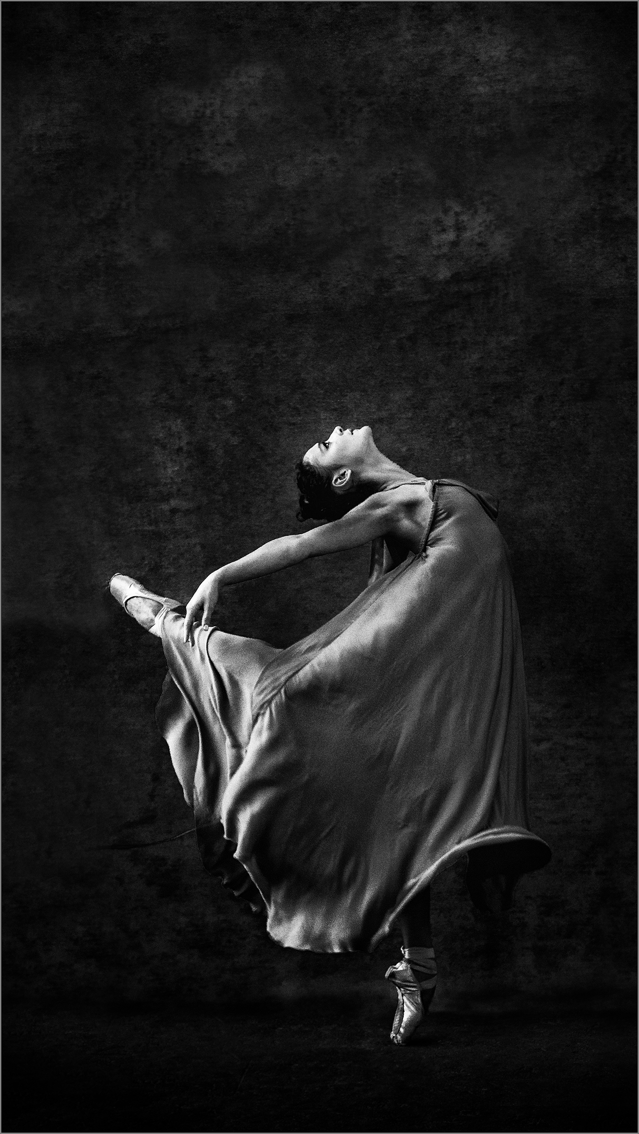 Model was in een kunstzinnige dans verwikkeld, mooi om te zien hoe ze helemaal op gaat in haar voorstelling.