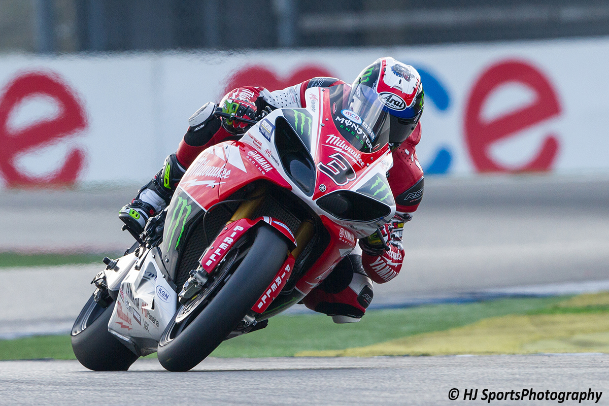 Josh Brooks vol op het gas uitkomende de GT-bocht tijdens British Superbikes op het TT-Circuit Assen