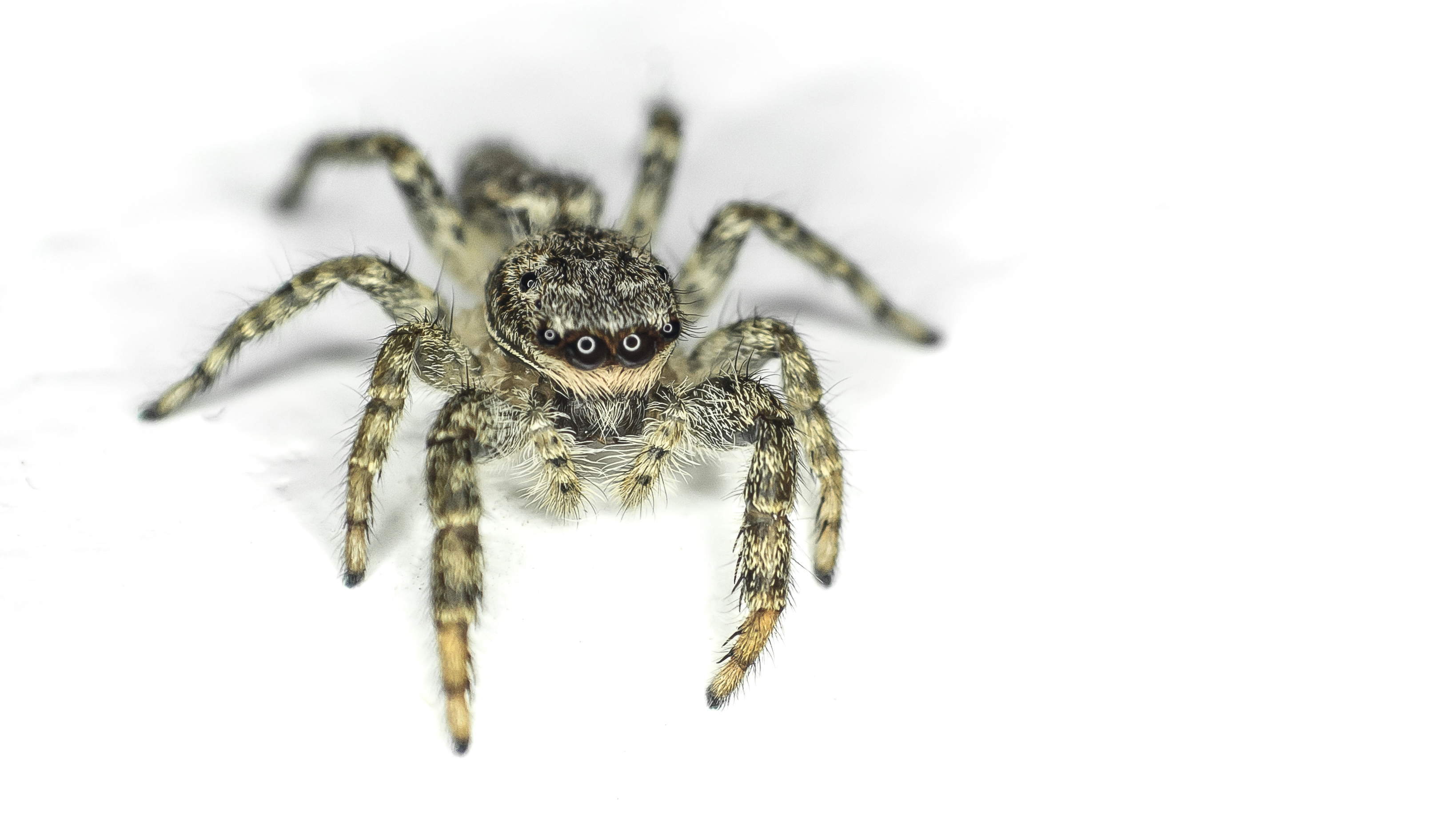 Foto is genomen met een oude Af Nikkor 35-70mm met een reverse ring. Fijne van deze lens is dat je in combinatie met de reverse nog steeds je diafragma kan instellen. Spin zat op de salon tafel en sprong na wat foto's recht in m'n lens.
