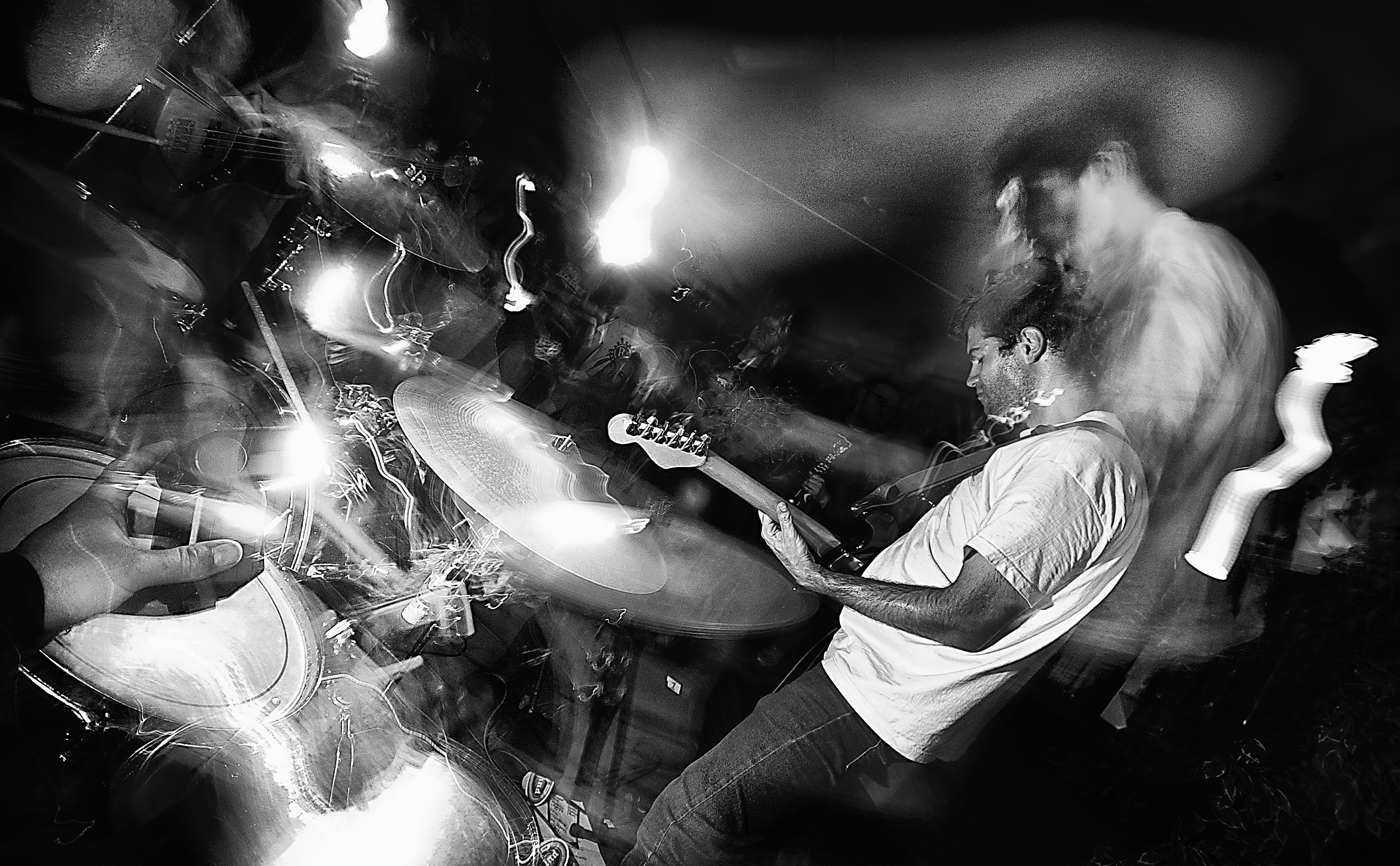 Een tijdlang heb ik geexperimenteerd met flitslicht en langere sluitingstijden tijdens concerten. In dit geval is de fliter hand held en een belangrijk onderdeel van de compositie.