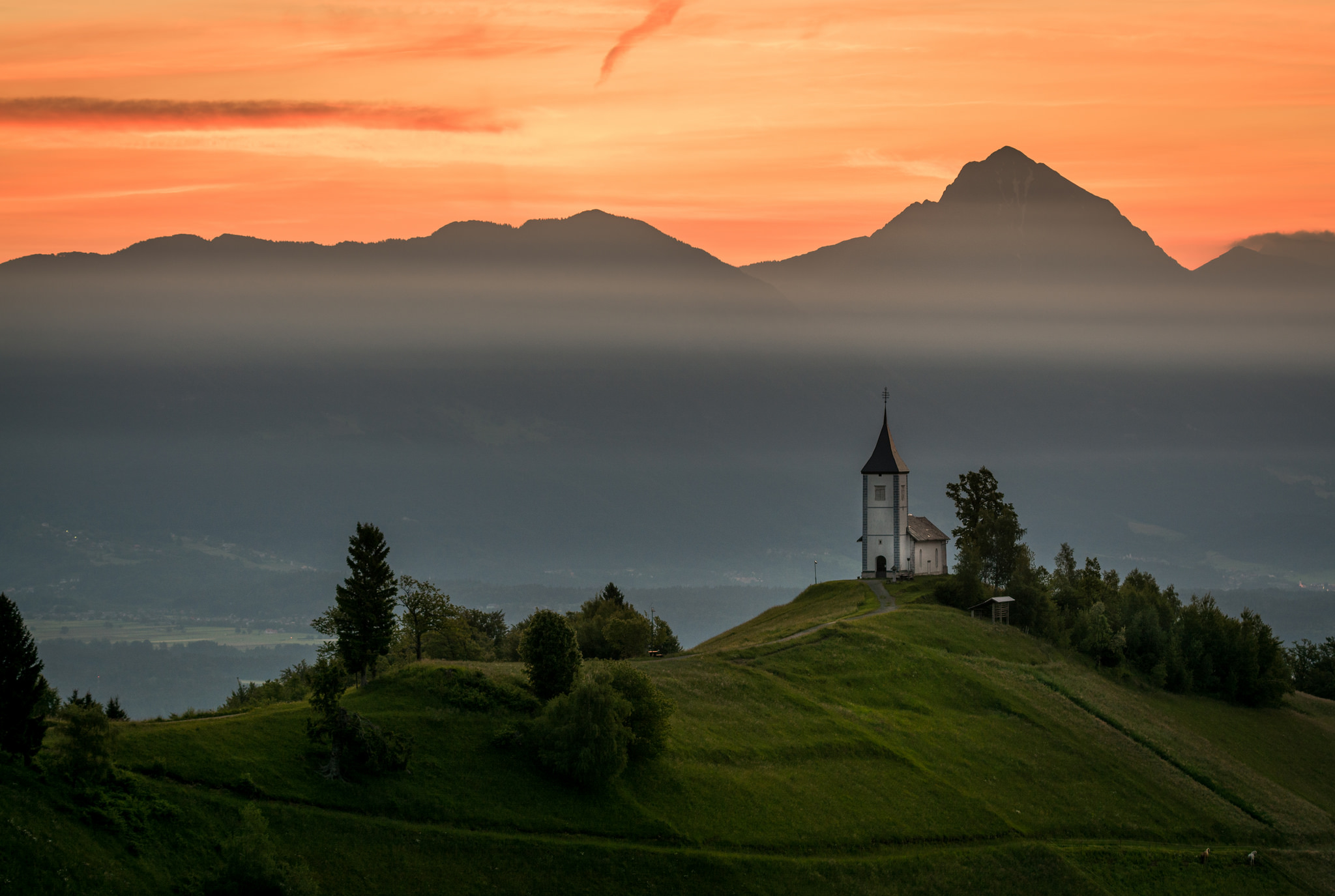 Het plaatselijk kerkje in Jamnik, Slovenië