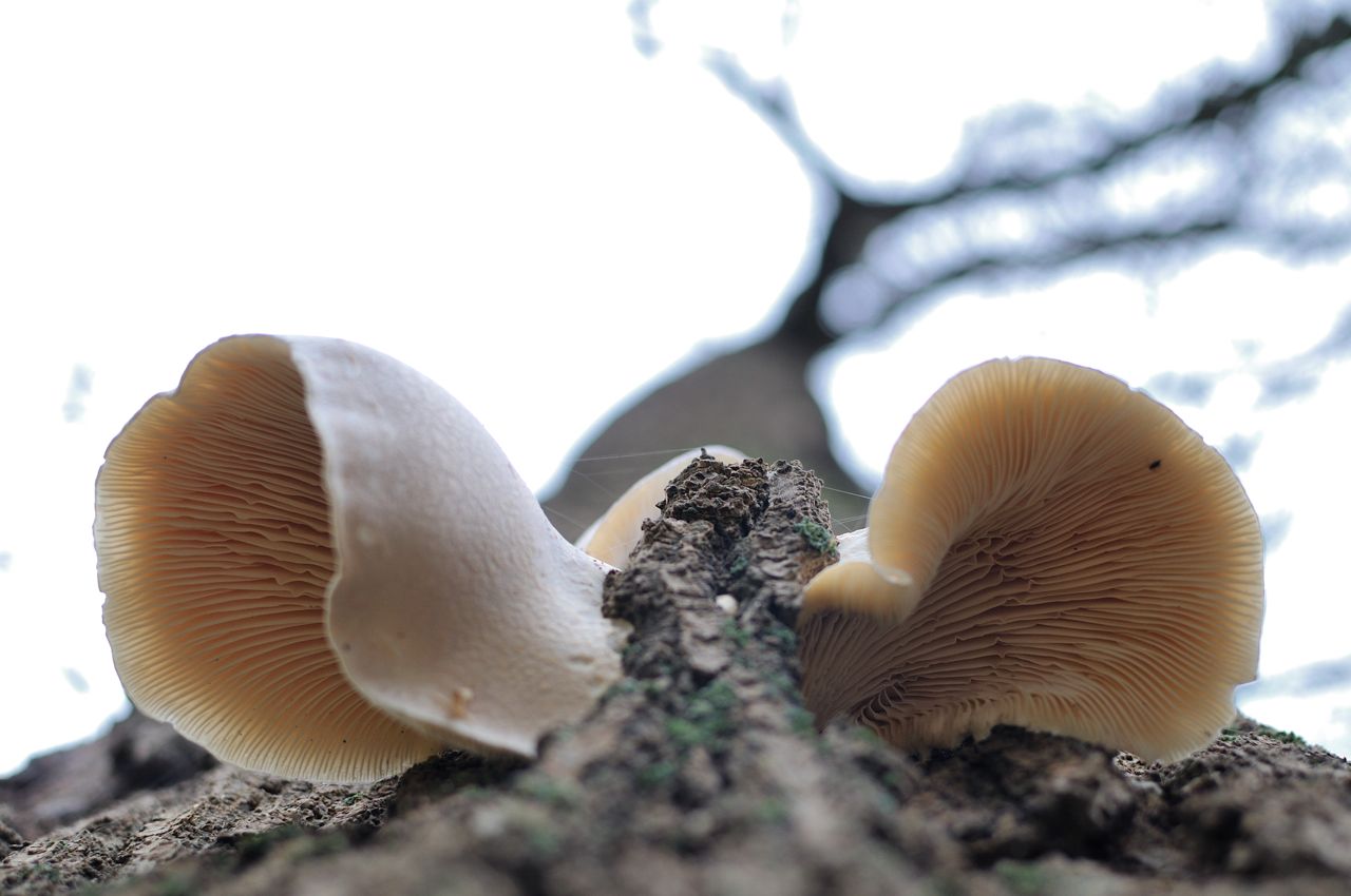 2 paddestoelen op een boom bekeken uit een aparte hoek