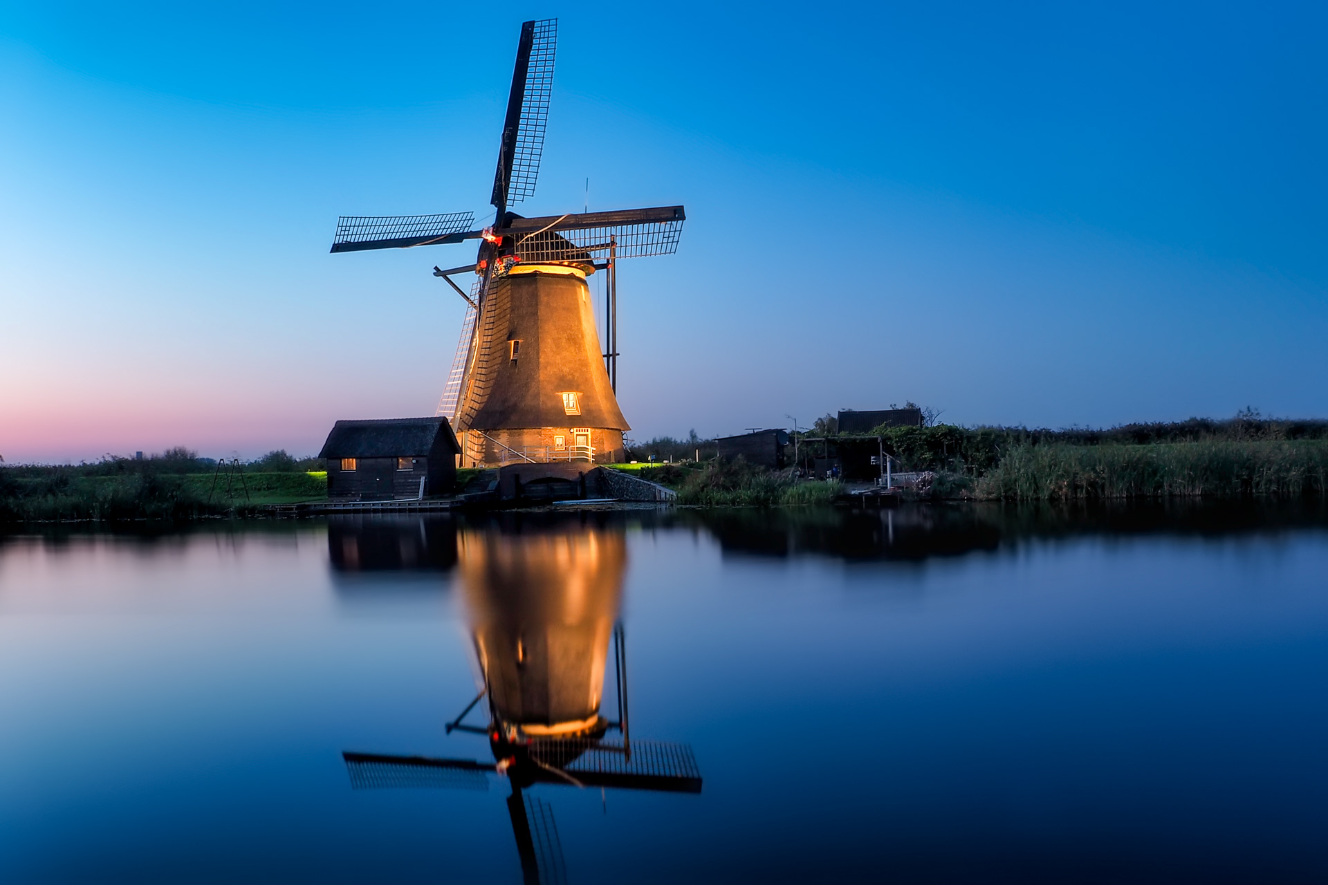 Kinderdijk molen verlicht