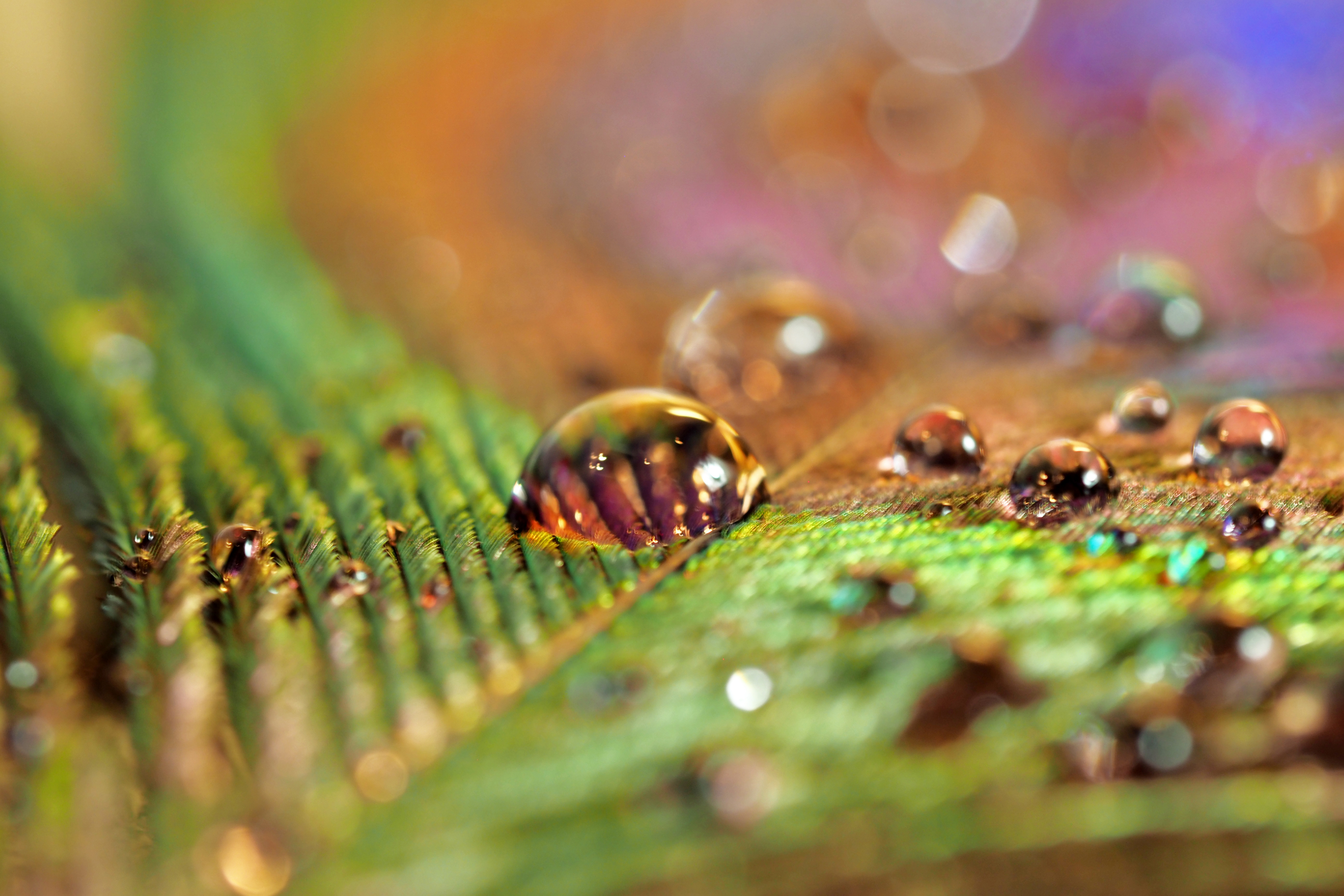 Druppel op pauwveer.