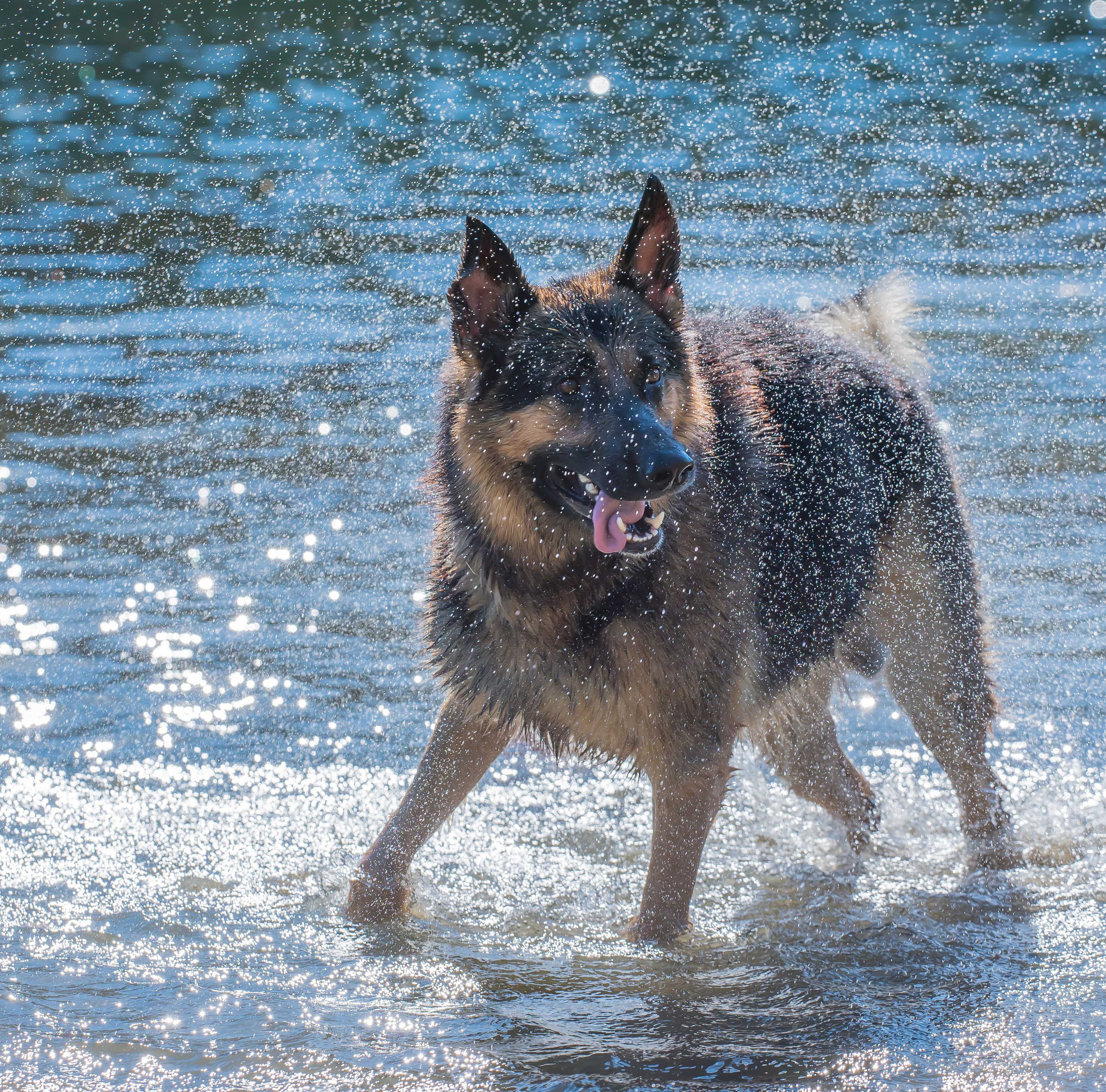 Een andere hond schudde zich uit en deze vent stond er prachtig haarscherp op en achter