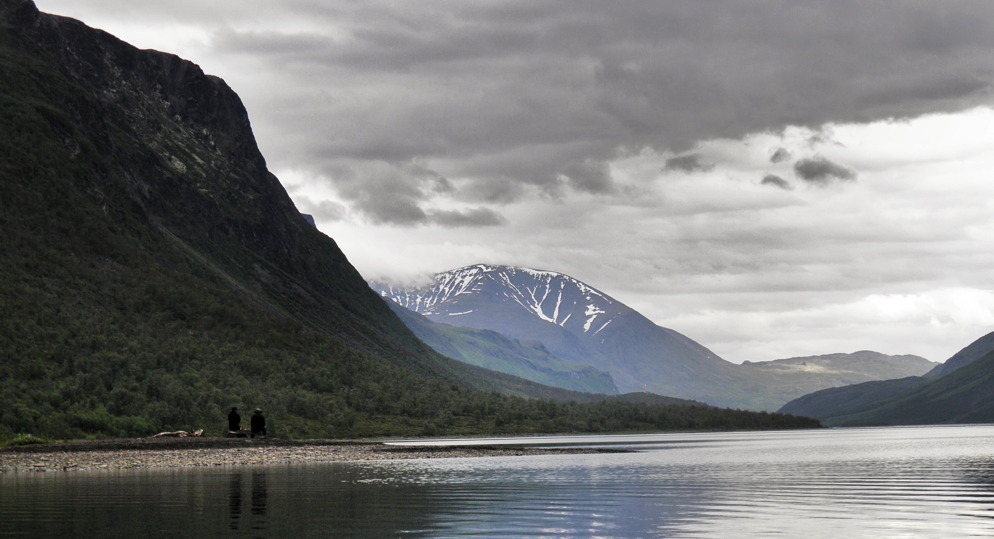 Koppel kijkt over meer