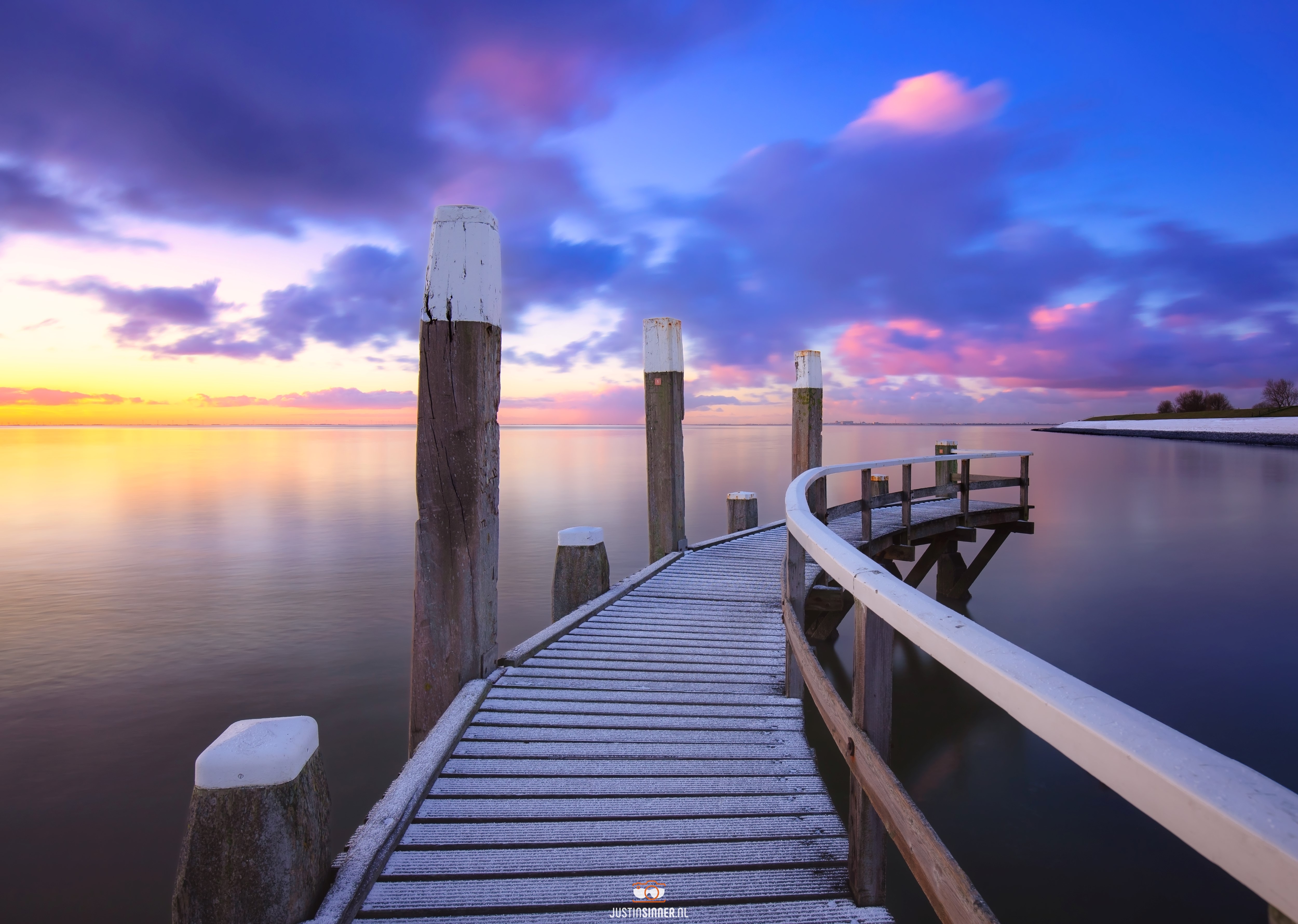 Steiger / Havenhoofd in Oudeschild op Texel op een koude winterochtend. Het heeft heel licht gesneeuwd en de kleuren in de lucht zijn prachtig! #Texel #waddenzee #waddeneiland #justinsinner #fotografie #zonsopkomst