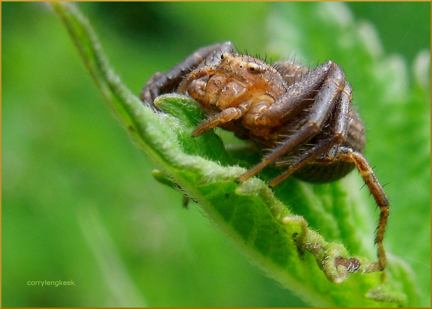 krabspin op een blaadje.