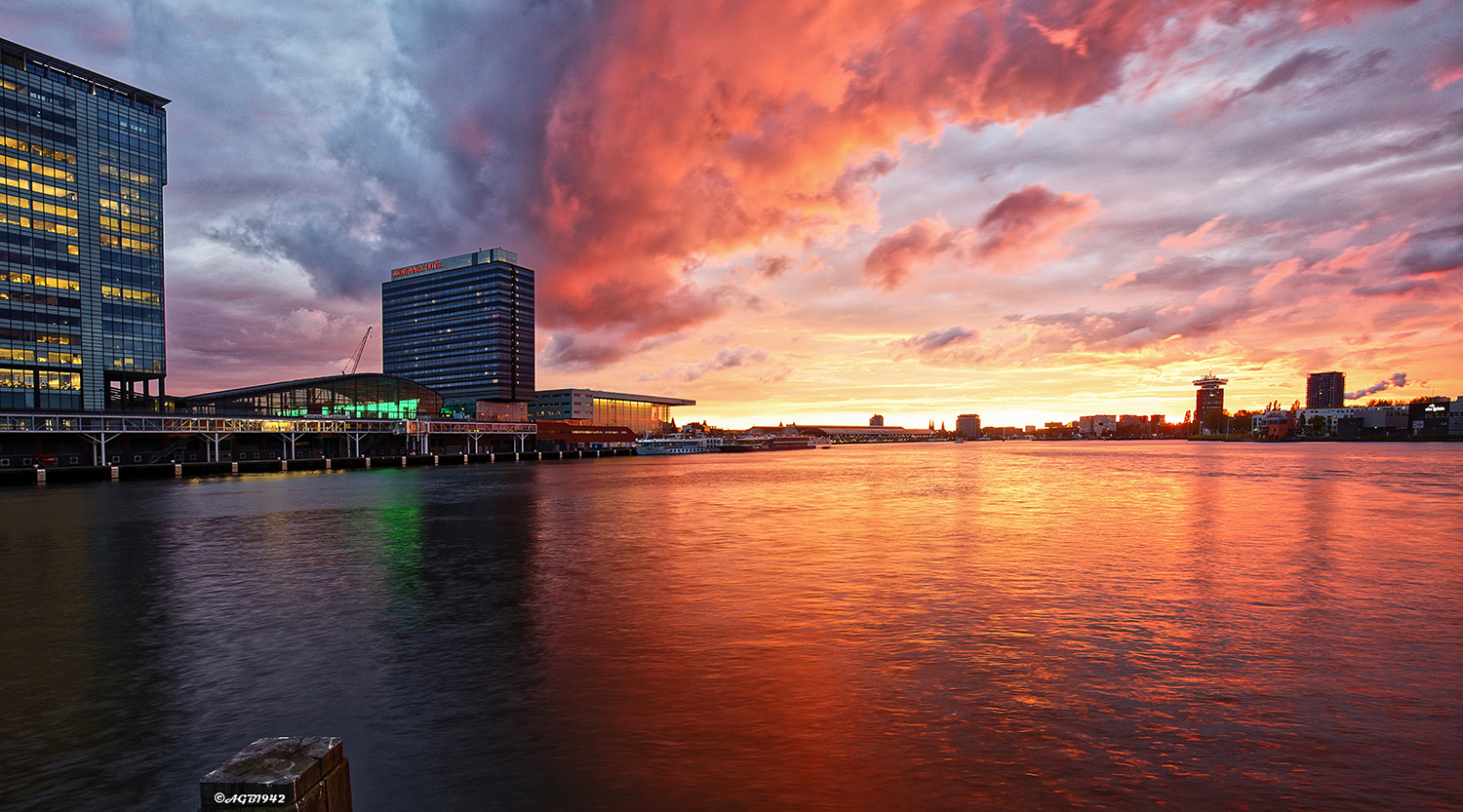 Zonsondergang boven het IJ.
