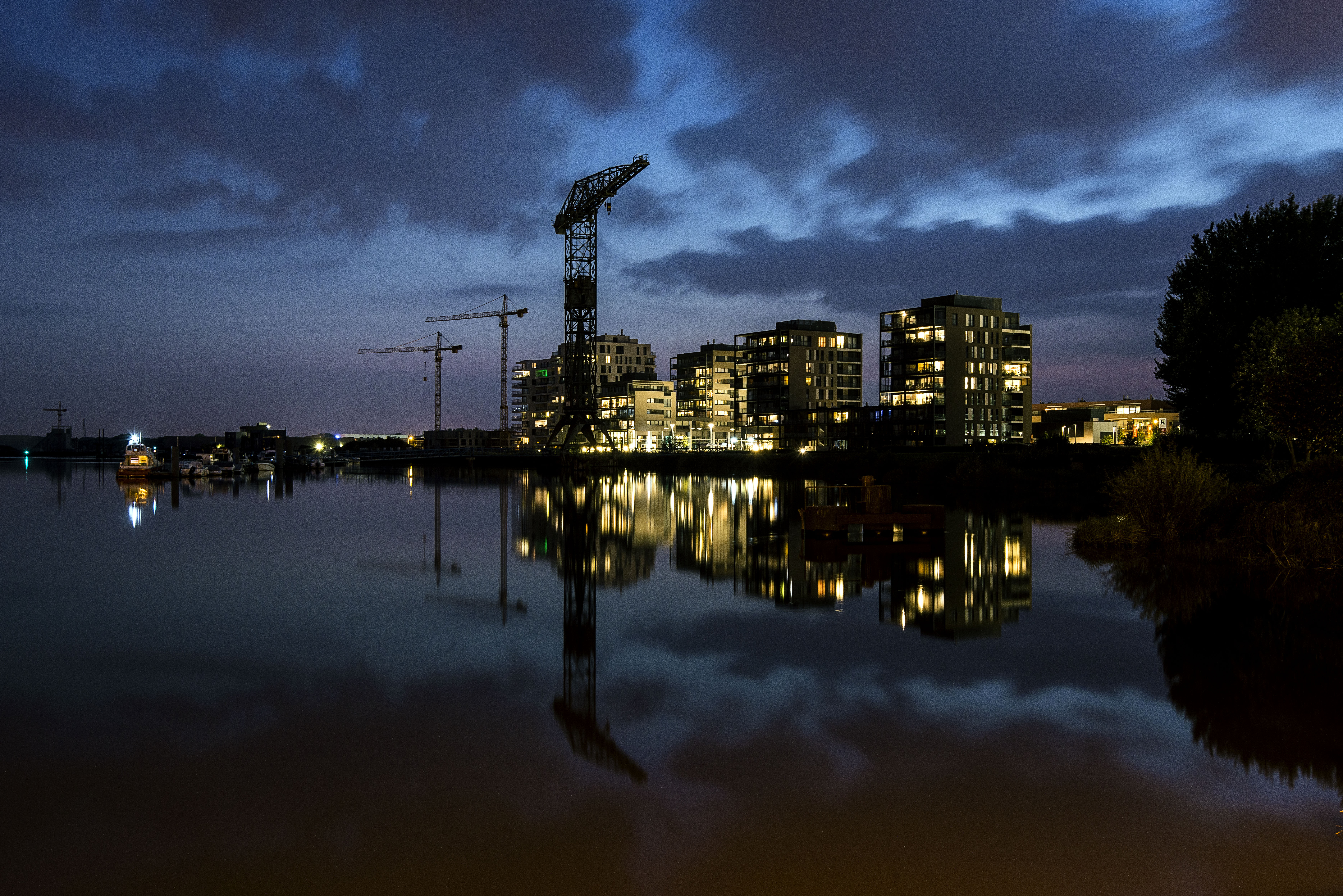 Langs het water.
