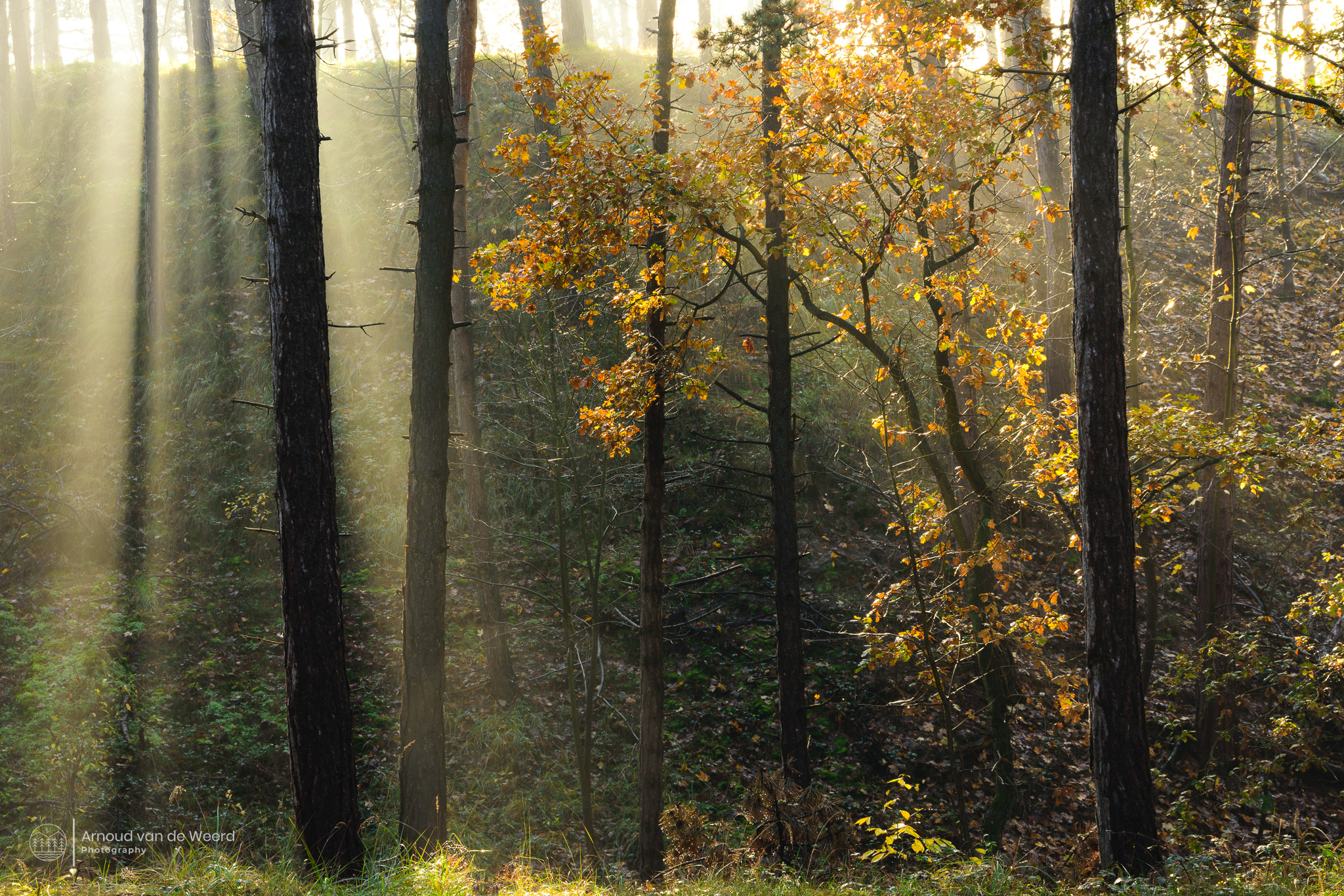 Afgelopen weekend heb ik deze foto gemaakt. Bijzonder dat er begin december nog volop herfstkleuren in het bos te zien zijn.